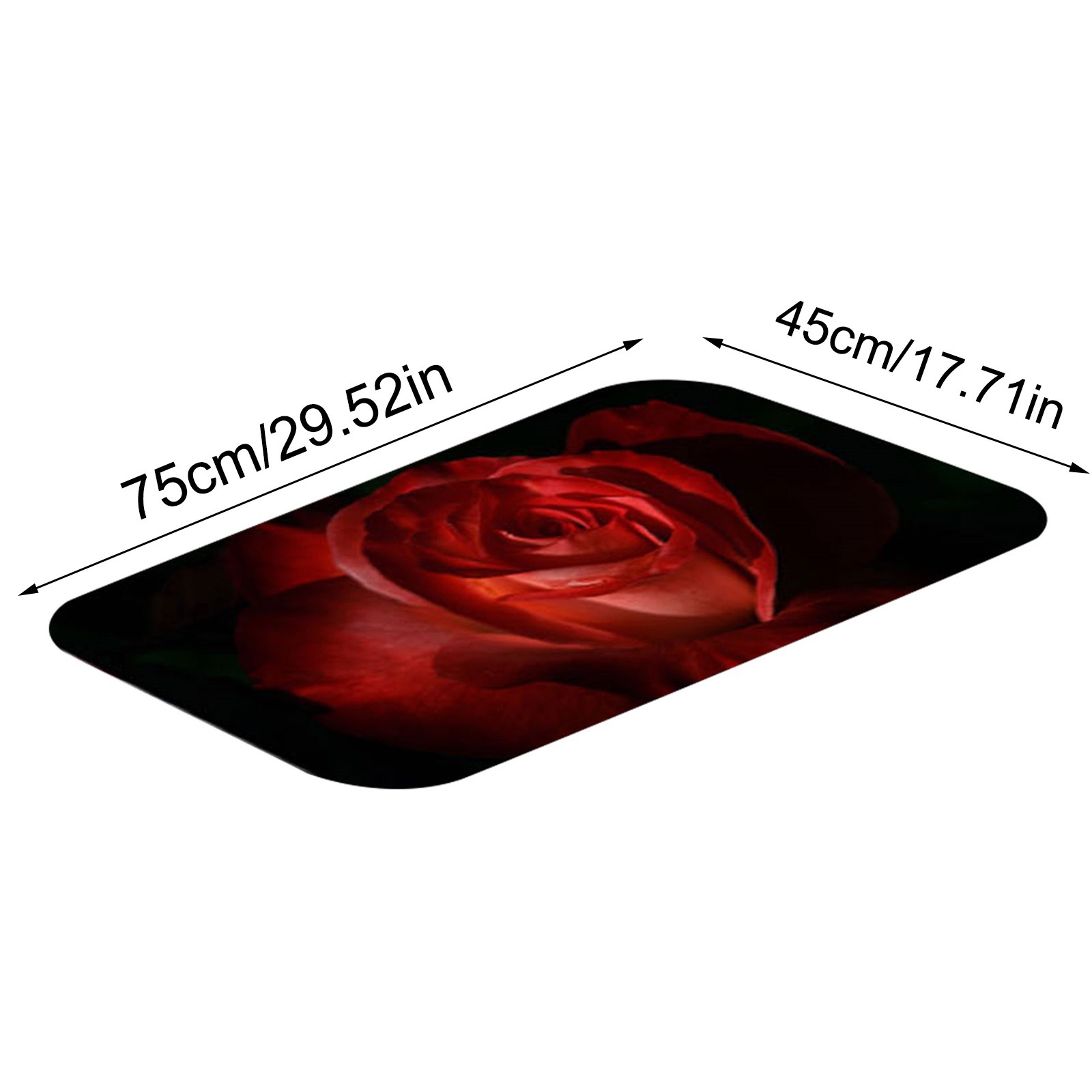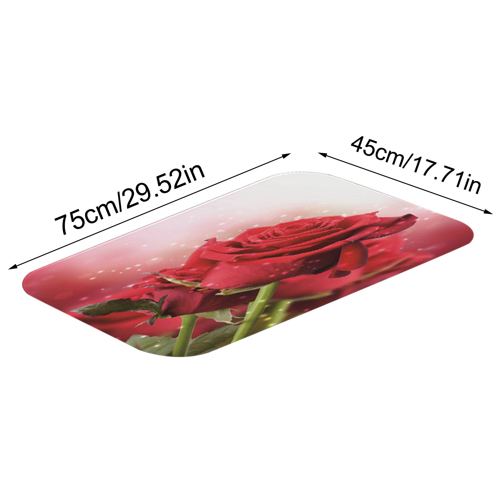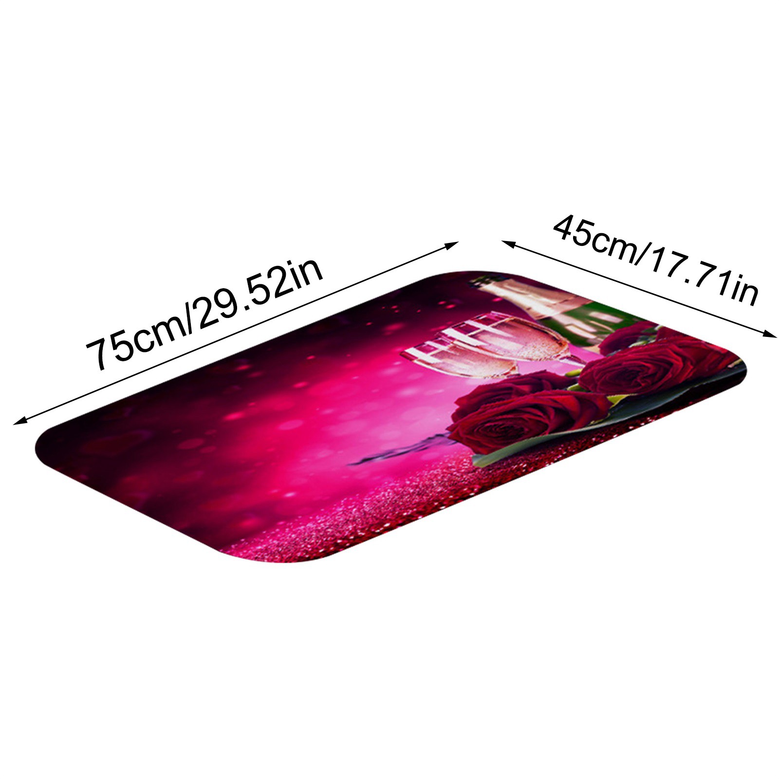Carefully crafted material: The high-quality flannel fabric on the side of the Valentine's Day floor mat is stain-resistant, absorbent and easy to clean. The non-slip mat on the other side holds the floor firmly to ensure your safe. Romantic design: The rose flower cart is embellished with a lot of love, printed on the carpet, it is an excellent decoration for Valentine's Day. Suitable occasion: Valentine's Day theme doormat can be used not only for the back door, front door, kitchen, but also for bedroom, laundry room, living room, office, etc. It is a good gift for friends and neighbors. Appropriate size: The size of this Valentine's Day doormat is about 29.52x17.71 inches/45cm x 75cm. This Valentine's Day decorative doormat is suitable for indoor use. Widely used: Welcome guests to your home with this unique seasonal doormat. Suitable for any deck, terrace, porch, balcony and entrance passage, and warmly welcome all who enter your home.Products include: