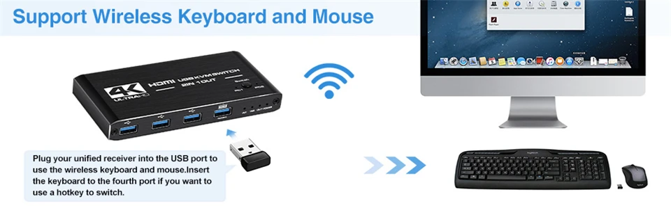 【Переключатель Hotkey, PLUG & PLAY】 переключатель USB HDMI с горячим ключом и кнопочным переключателем, свободно переключается между 2 компьютерами. Usb-переключатель может быть приведен в действие для обеспечения более стабильной передачи сигнала. Подключи и играй, экономя пространство. С поддержкой беспроводной клавиатуры и мыши и механической игровой клавиатуры. (В отличие от питания через USB, питание через HDMI легче пробуждать устройства, когда компьютер находится в спящем режиме, что более удобно и экономит время)