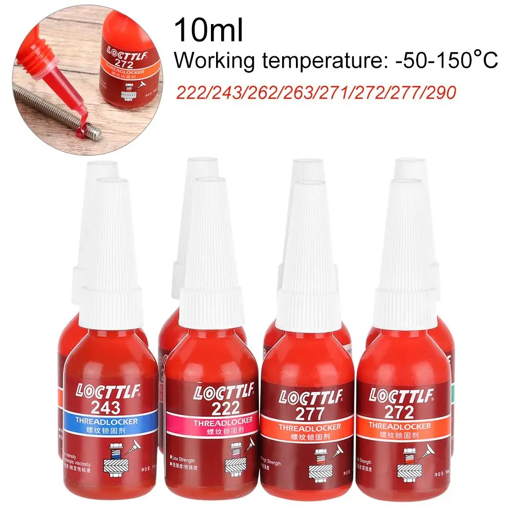 Антикоррозийная, термостойкая, высококлеящаяся, антинапорная. Тиксотропия вискосити, применяется на большей части металлической поверхности. Хорошая проницаемость и поглощение вибрации, отсутствие испарения, отсутствие загрязнения. Используется для заполнения протечек, Плотного замка, анти-утечки, подходит для всех видов металлических нитей. Может помочь вам решить эти проблемы: Винтовая шнековая прокладка не в плаценте не тугая. Применяется к: винтовым часам/тормозу мотоцикла/двигателю/усилению шин/метровой резьбе/трубной резьбе/водопроводу/большому механическому оборудованию/заводскому оборудованию. У нас есть 10 мл Threadlocker 222/243/262/263/271/272/ 277/290 Цвет: синий/фиолетовый/красный/зеленый Содержание нетто: около 10 мл Рабочая температура: -50-150 Посылка включает: 1 шт * threadlocker Характеристики: 222: Низкая вязкость, низкая прочность, этот продукт подходит для приложений, требующих частого разбора, потому что его можно легко снять со стандартными ручными инструментами; продукт также подходит для металлов, которые легко резать. 243: средняя прочность, быстрое отверждение, используется для инертной поверхности, Хорошая растворимость масла. Легко разбирается и может использоваться на рабочей поверхности с небольшим загрязнением масла. Его можно использовать для блокировки и уплотнения нижней нити M20. 262: высокая прочность, клей для фиксации резьбы обладает высокой прочностью и отличной устойчивостью. Подходит для большинства металлических поверхностей. Тиксотропная вязкость, хорошая химическая стойкость. Используется для блокировки и герметизации нитей ниже M20. Это постоянный запорный агент с отличной защитой от ржавчины и коррозионной стойкостью при экстремальных химических/экологических условиях. 263: средняя высокая прочность, подходит для большинства металлических поверхностей, тиксотропная вязкость, химическая стойкость. Используется для блокировки и герметизации резьбы M20. ltisapermanent запирающий агент с отличной ржавчиной и коррозионной стойкостью при экстремальных химических условиях. 271: высокая прочность, средняя и Низкая вязкость. Используется для постоянной блокировки и герметизации ниток ниже M36. 272: запорный агент резьбы/высокая термостойкость/высокая прочность. Может быть быстро вылечить в том числе не используется никакая специальная обработка поверхности прошивки рекомендуется для болт разборки до диаметр 1,5 тех случаях, когда нагрев и без использования каких-либо инструментов не требуется. 277: высокая прочность, высокая вязкость, отличная химическая стойкость. Используется для перманентной блокировки и герметизации нитей ниже M36. Это может предотвратить появление резьбы от коррозии и крашения. Он может быть собран с помощью тепловых инструментов. 290: средняя и высокая прочность, очень низкая вязкость, для профилактического обслуживания, потому что продукт имеет очень низкую вязкость и не нужно разбирать перед покрытием.