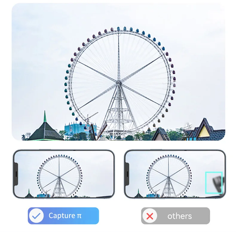 Захват Π может работать со смартфонами, которые поддерживают супер широкоугольную съемку, Нет препятствий