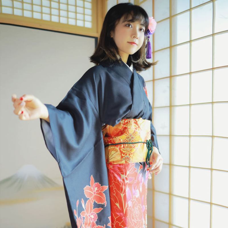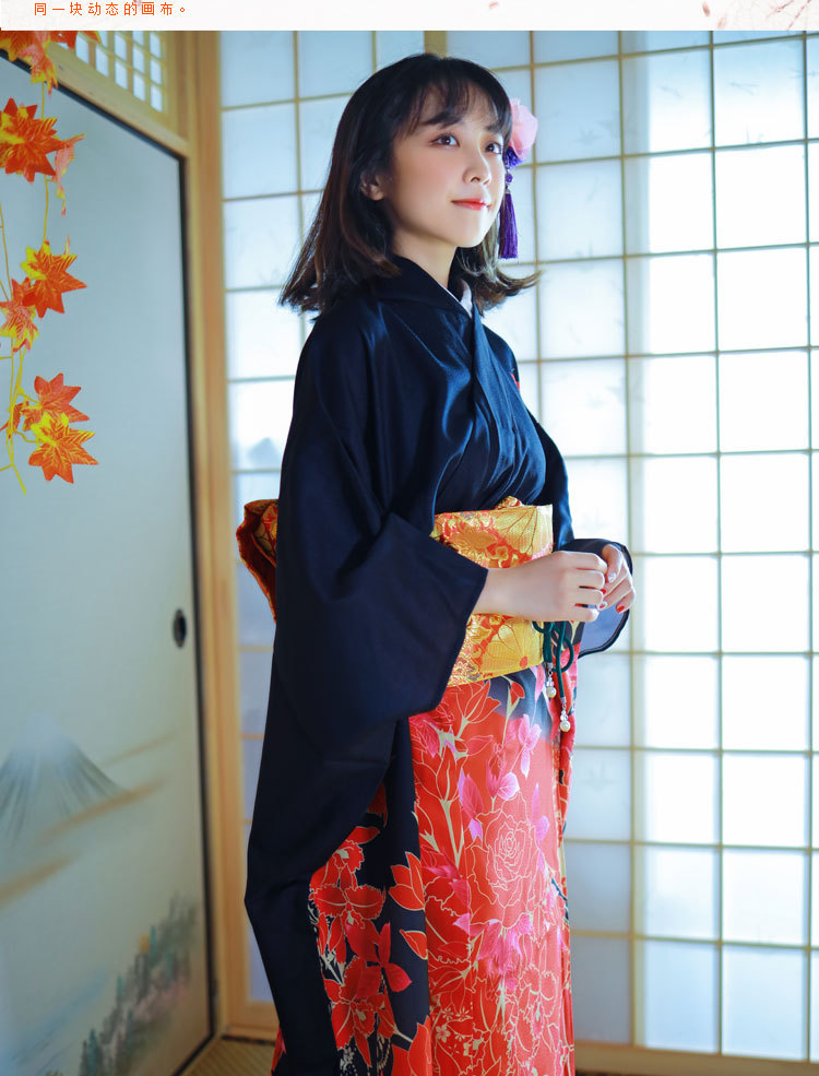 Size3:SpringKimono + belt + head flower + socks + tie + collar + decorative waist rope + handbag + clogs(9 Pieces Set)