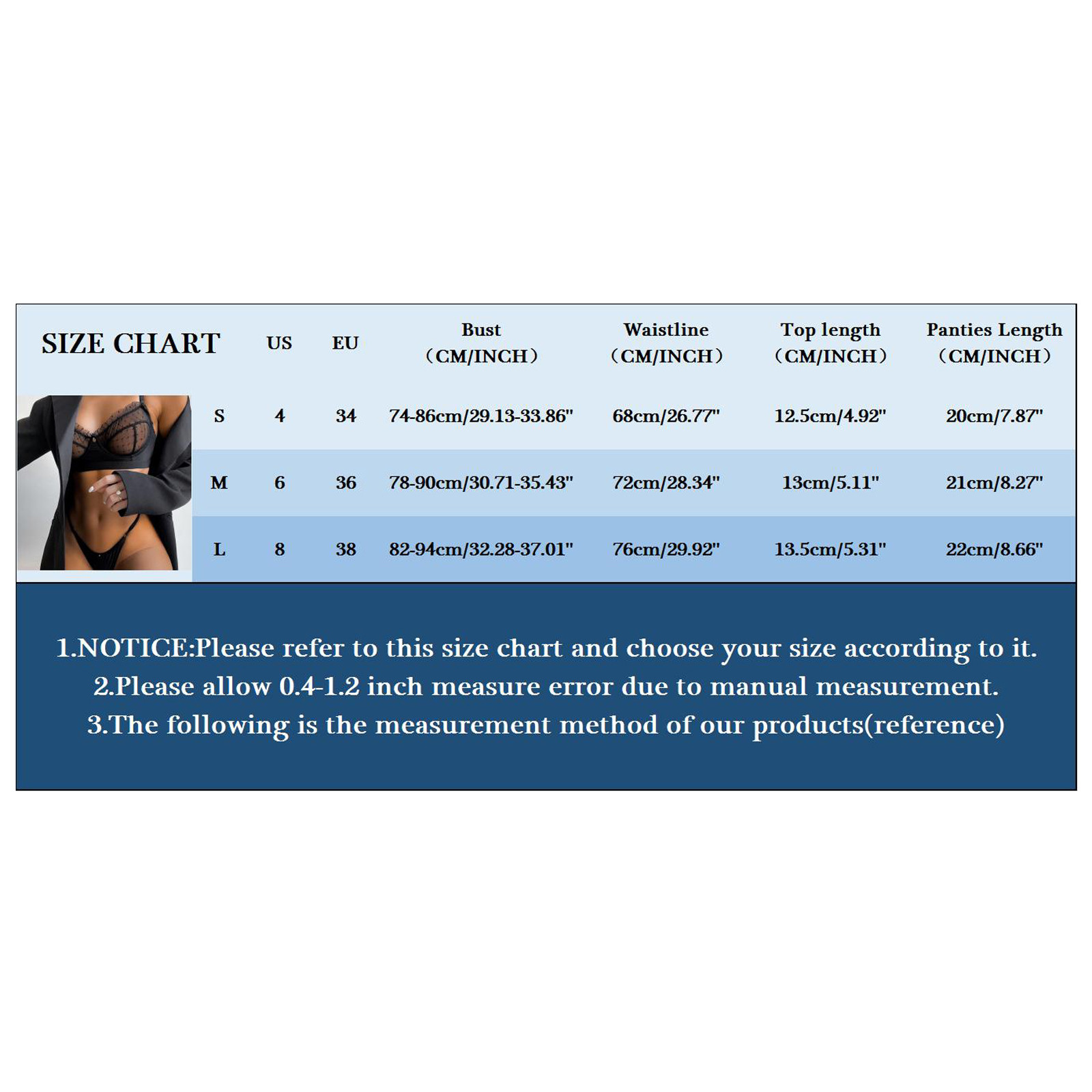 Размеры Бюст Линия талии Длина верха Длина трусиков S 74-86 см/29,13-33,86'' 68 см/26,77'' 12,5 см/4,92'' 20 см/7,87'' М 78-90 см/30,71-35,43'' 72 см/28,34'' 13 см/5,11'' 21 см/8,27'' L 82-94 см/32,28-37,01'' 76 см/29,92'' 13,5 см/5,31'' 22 см/8,66''Купил данные часы и был расстроен. Заказал часы, а они мне пришли только через месяц. Хотя обещали с начало за... Читать отзыв полностью...
