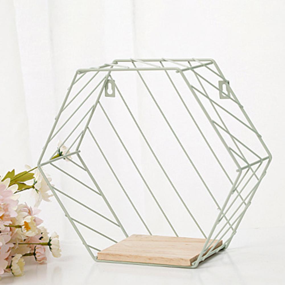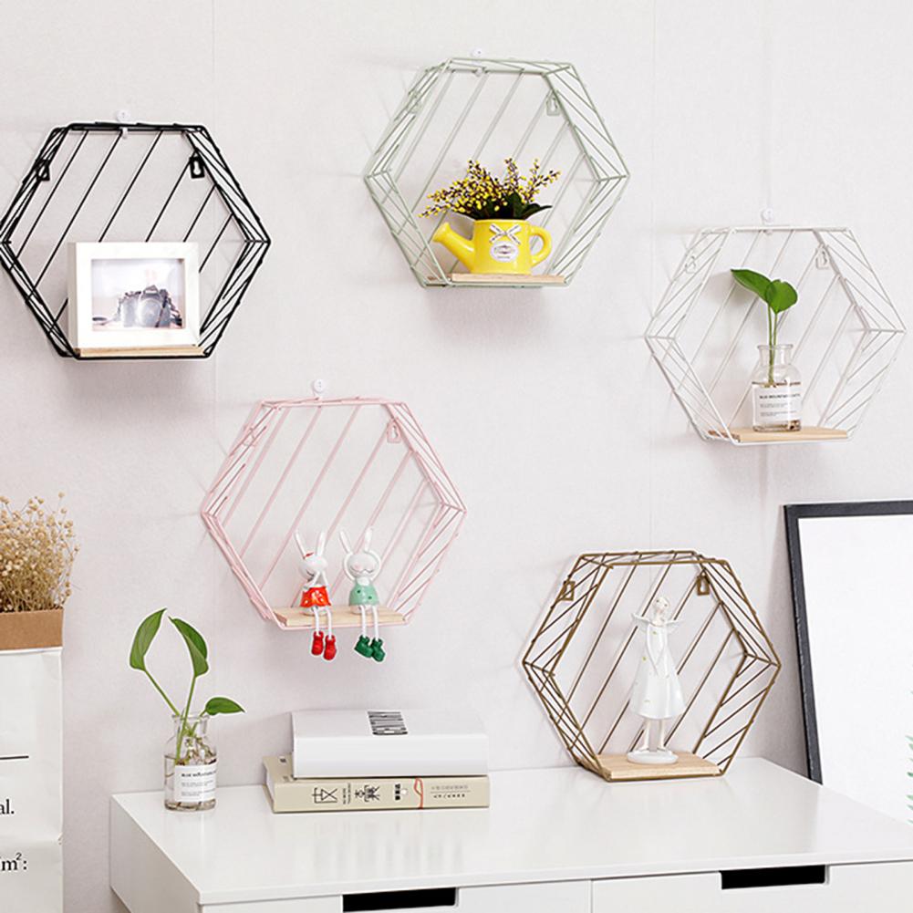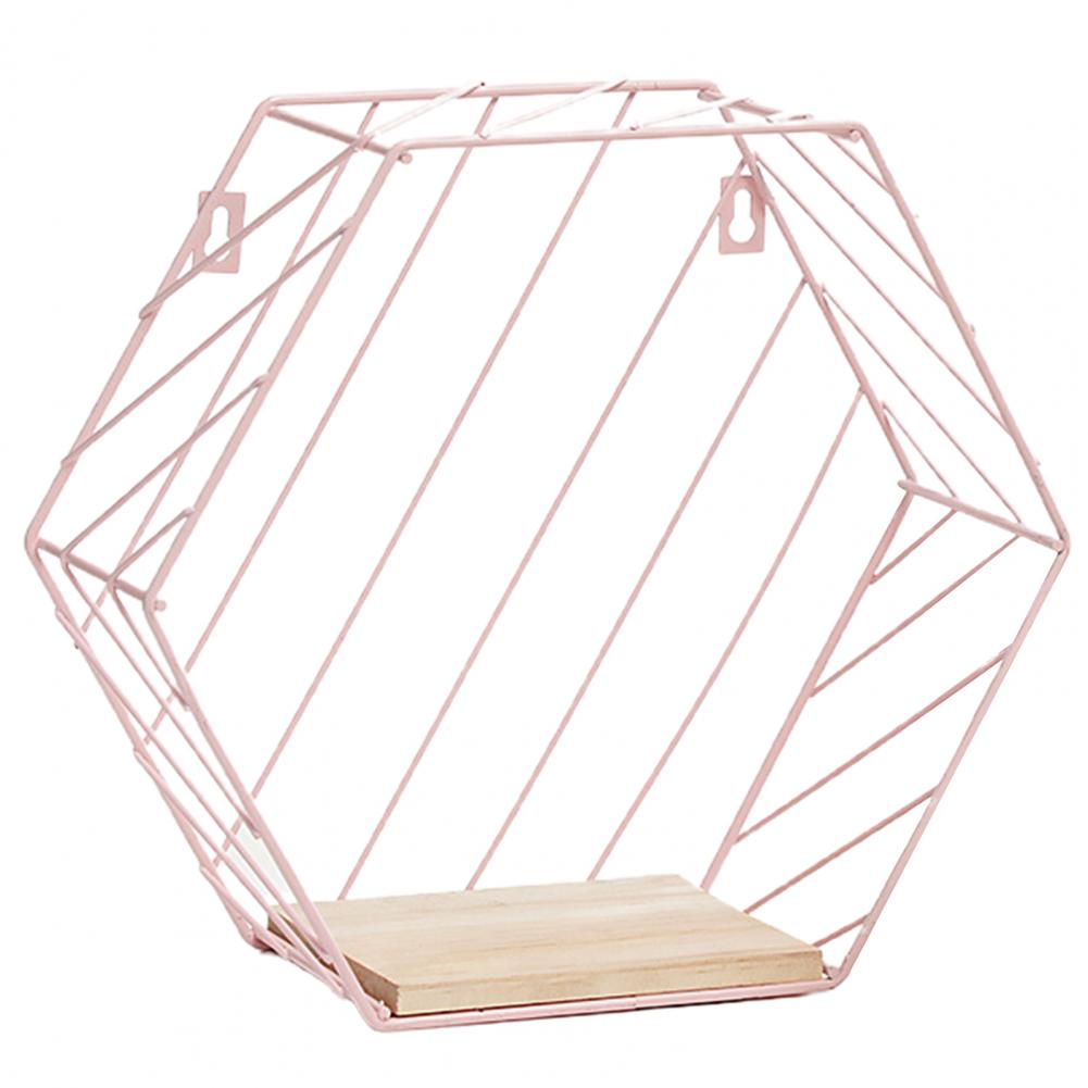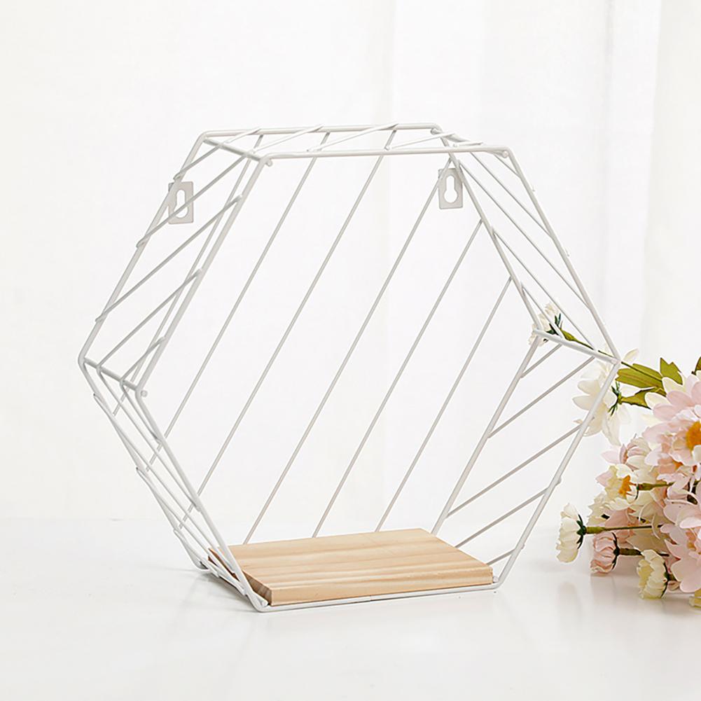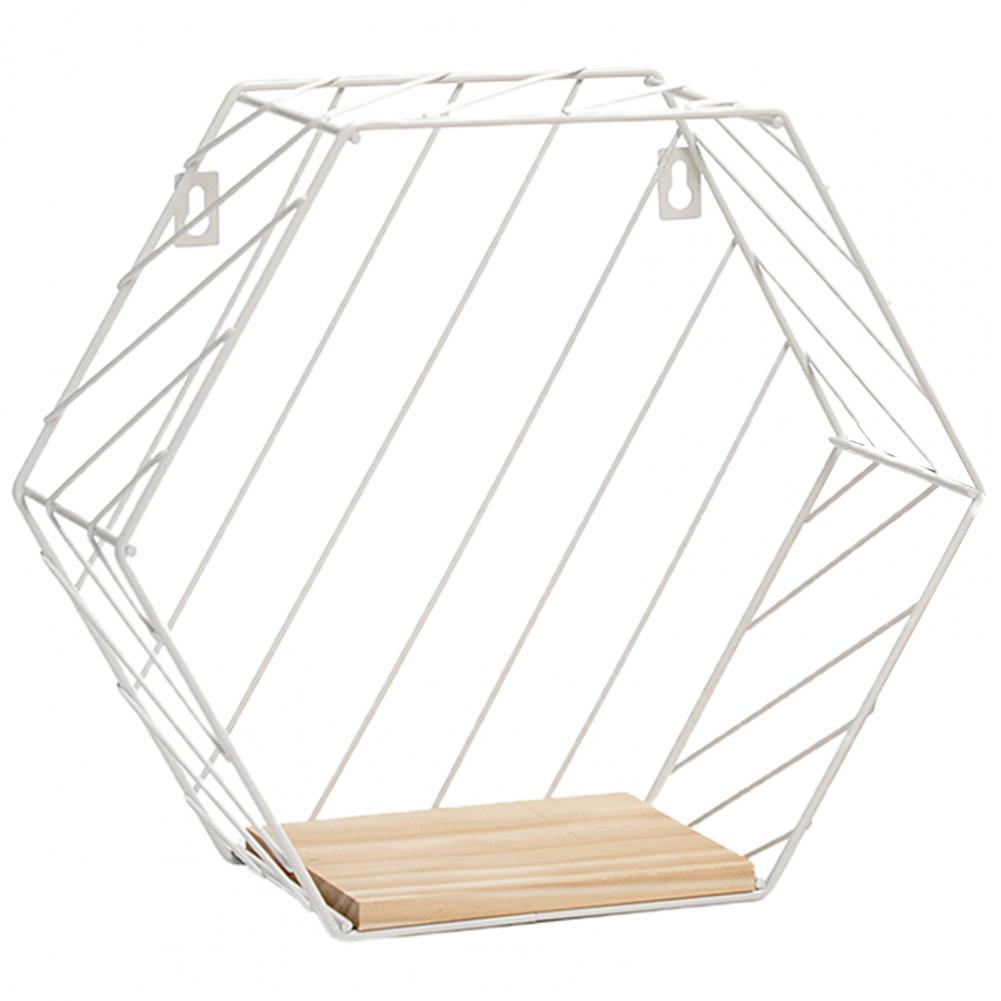 Полка для хранения в скандинавском стиле со съемной решеткой, настенная шестиугольная полка для украшения дома