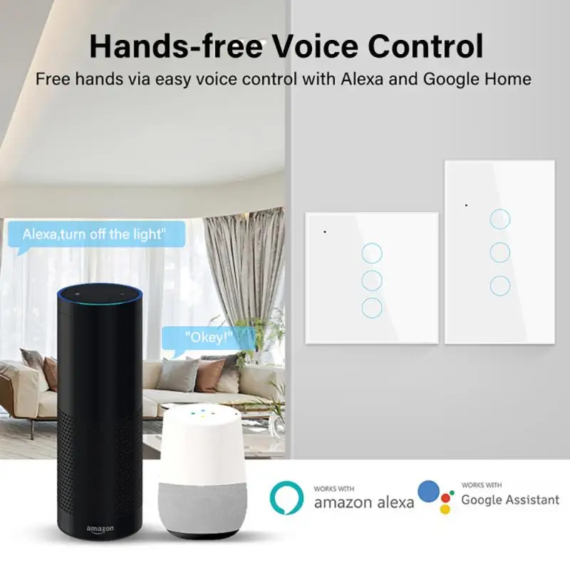 2. Совместимость с Alexa и Google home позволяет свободно управлять голосом; Удаленное управление устройствами на вашем смартфоне через приложение smart Life/Tuya, где бы вы ни находились.