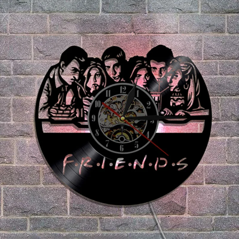 Друзья ТВ серии часы в виде компакт-диска настенные часы с светодиодный подсветкой винтажные виниловые часы настенные часы домашний Декор подарок для друга horloge