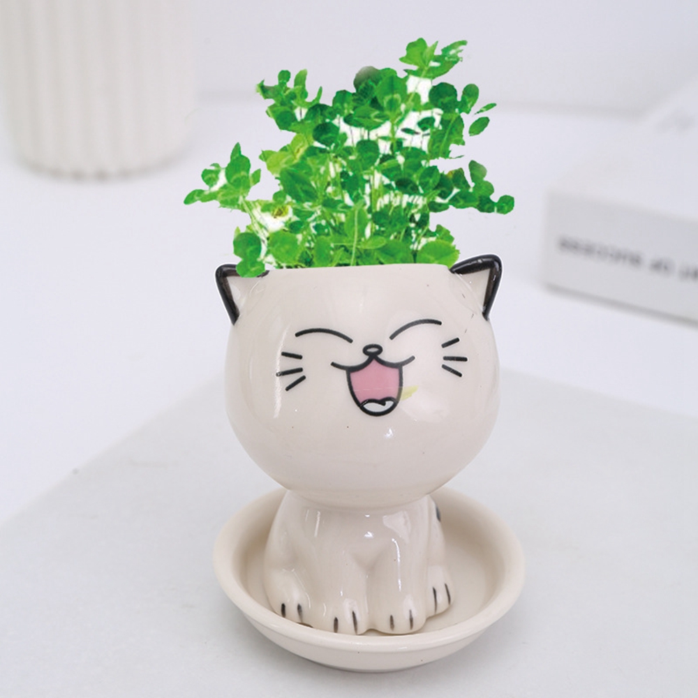 Керамический цветочный горшок, мини кот в форме мультяшного милого растения в горшке, настольный горшок для растений в горшке, украшение для стола, маленькое украшение