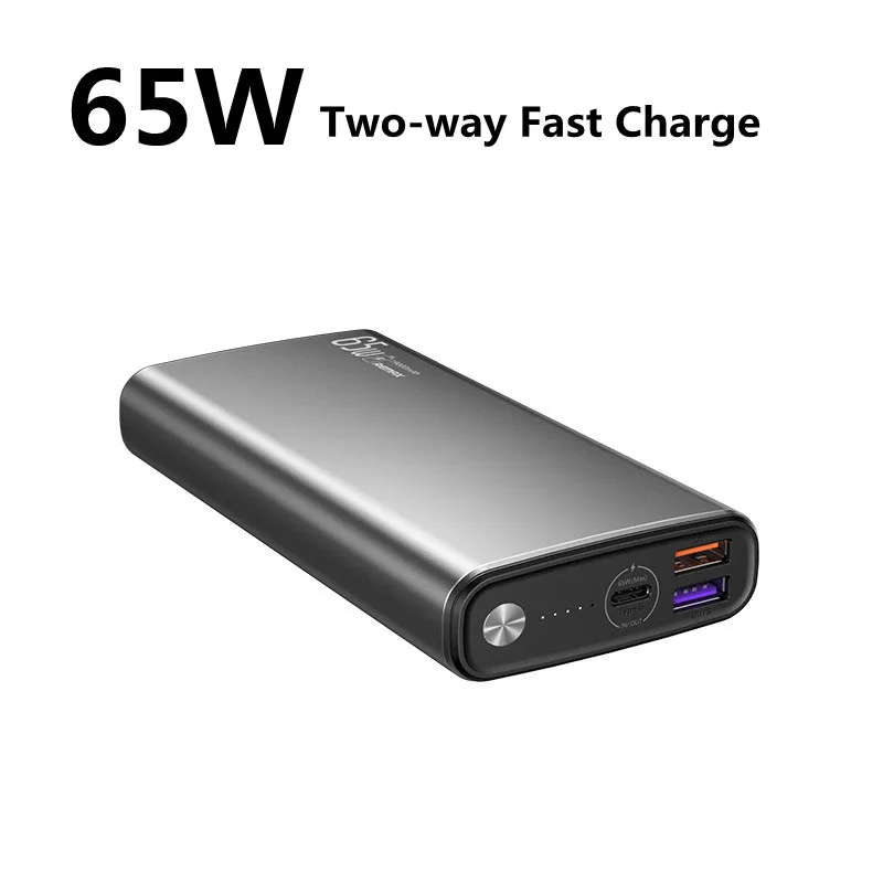 Notebook Power Bank 20000mAh 65w Two-Way Super Fast Charge Portable Power Bank Mobile Phone External Auxiliary Battery Charger<;br/>Quick details<;br/>Certification: CE FCC RoHS<;br/>Output interface: Type C, dual USB<;br/>Input interface: Type C<;br/>Function: fast charging support<;br/>Type: fast charging, high capacity, portable<;br/>Battery type: Lithium polymer battery<;br/>Place of Origin; Place of Origin: China<;br/>Weight: 412 grams<;br/>Socket standard: universal<;br/>Protection: over discharge, short circuit protection, over charge, low tension<;br/>Product name: Mini 65W multi-function fast charging power supply<;br/>Actual capacity: 19000mah<;br/>Input voltage:<;br/>Type C: 5V-3A / 9V-3A / 12V-3A / 15-3A / 20V-3.25A (65Wmax)<;br/>The output voltage:<;br/>Type C: 5V-3A / 9V-3A / 12V-3A /15-3A/20V-3.25A (65Wmax)