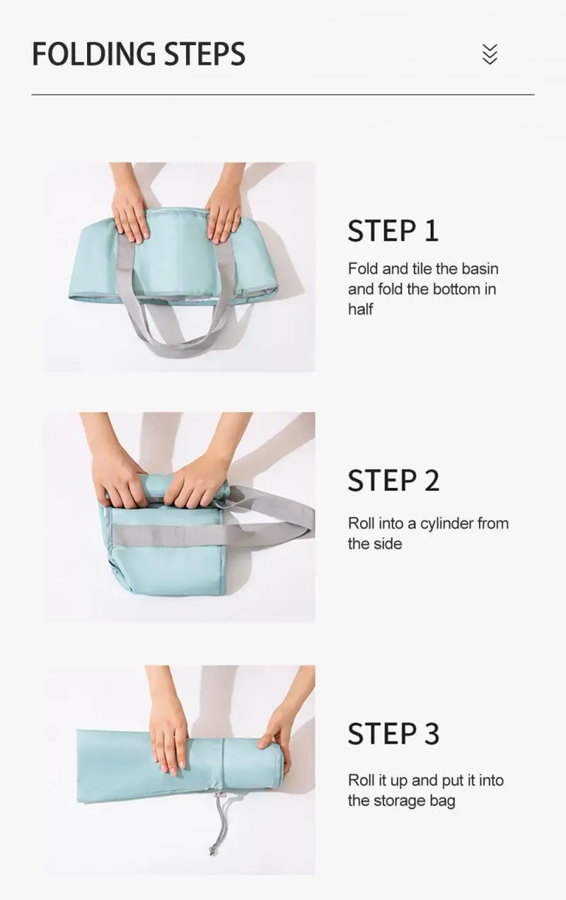 Легко носить с собой, не занимает места, складывается, переносится и легко переносится, так что вы можете комфортно замочить ноги даже в деловых поездках.