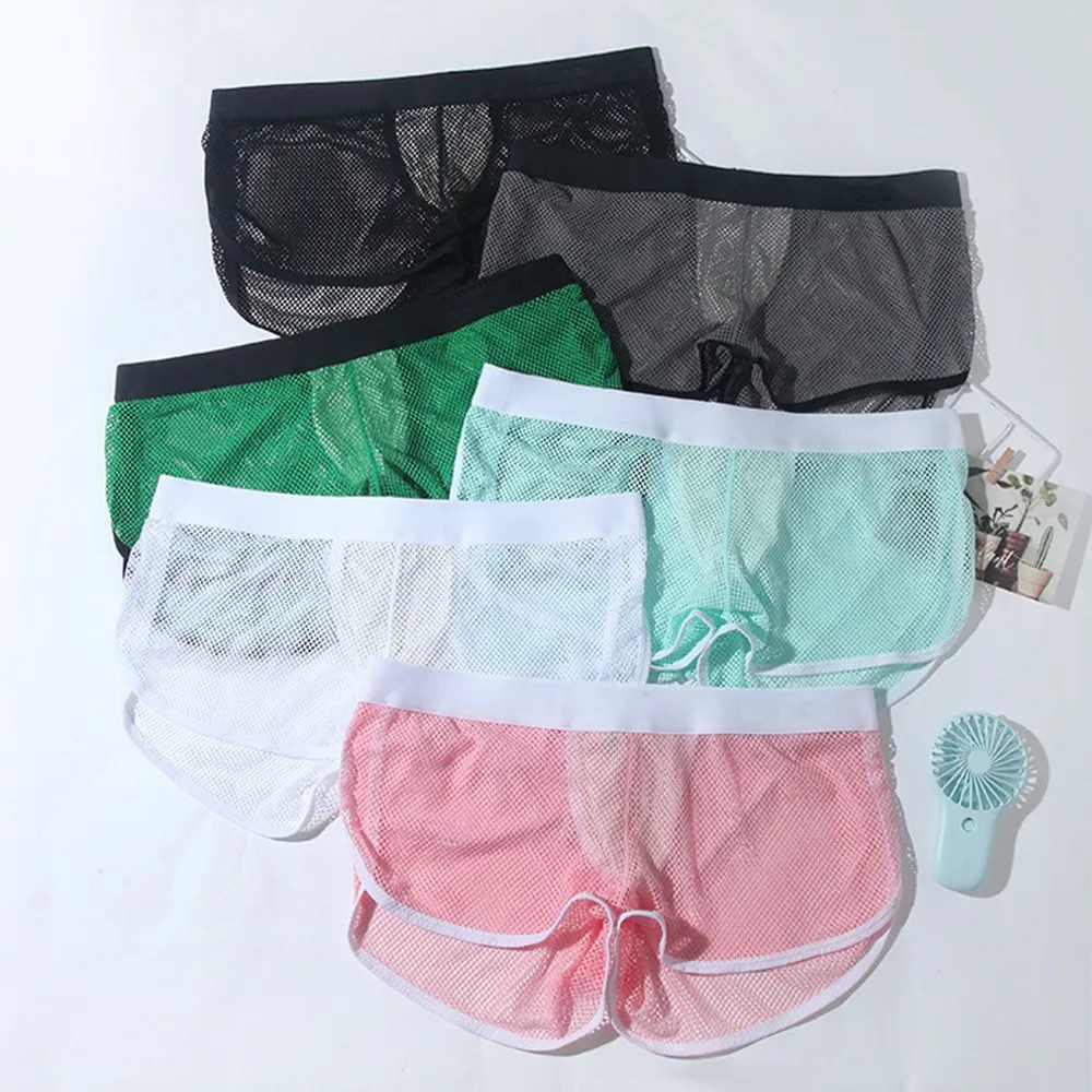 * Описание товара: ③ мужские сетчатые трусики с низкой талией, сексуальное нижнее белье, дышащие прозрачные полые сексуальные трусы-боксеры