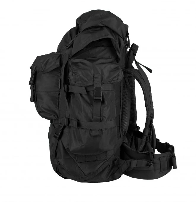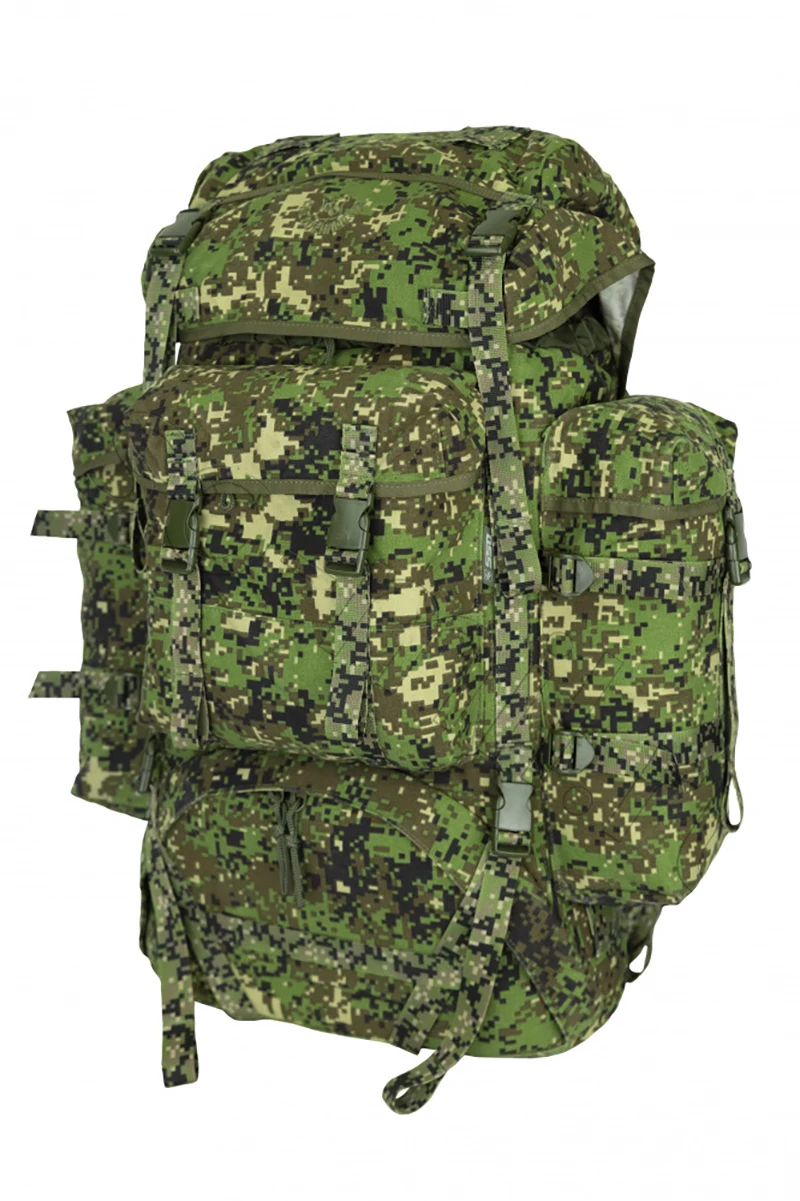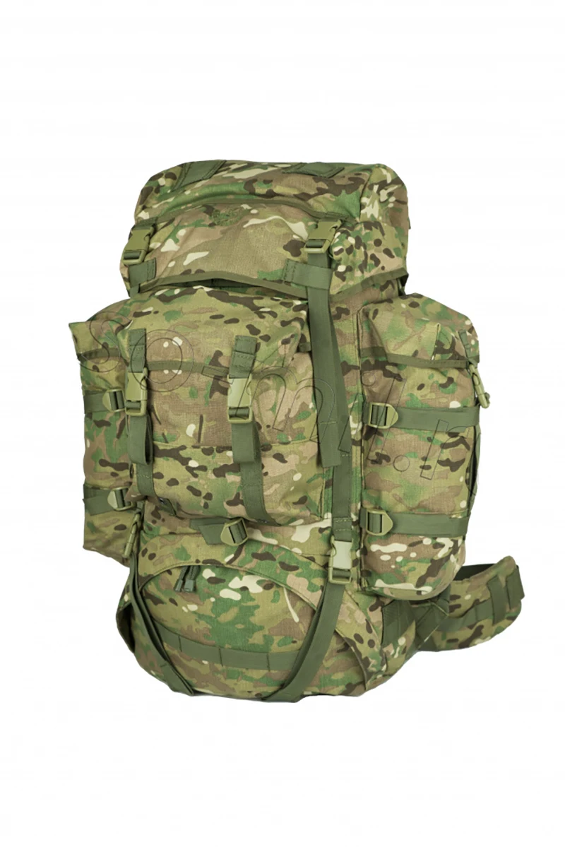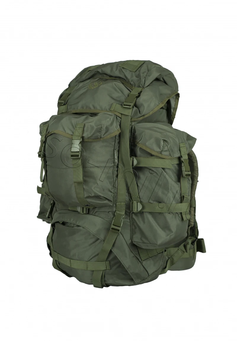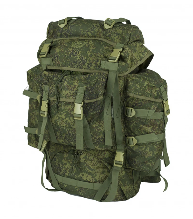 Рюкзак имеет основную емкость с утягиваемым тубусом (тубус утягивается шнуром со специальным самоконтрящимся стопором), два боковых, один карман на лицевой стороне рюкзака, два кармана, образованных стенками основной емкости и боковых кармана, а также верхний клапан с карманом на молнии. Между основной емкости рюкзака и лицевым карманом располагается специальный карман для крепления малой саперной лопаты. Внутренняя сторона основной емкости имеет специальный карман для складного коврика, а также специальные карманы-пазы для вставки двух дюралевых пластин-лат, образующих жесткий каркас рюкзака. Основная емкость поделена на две части съемной, регулируемой перегородкой – нижняя часть предназначена для укладки спального мешка и прикрывается нижним клапаном. Нижний клапан рюкзака застегивается на двукурсорную молнию, прикрытую планкой и усиливается двумя ремнями, снабженных быстроразъемными замками.