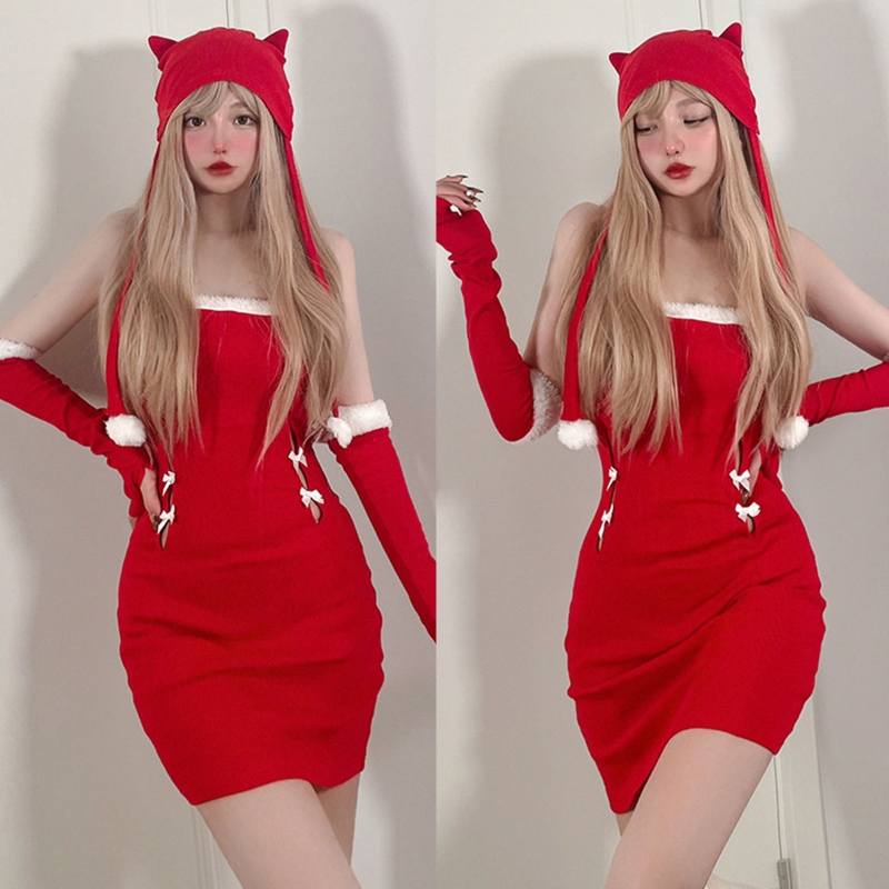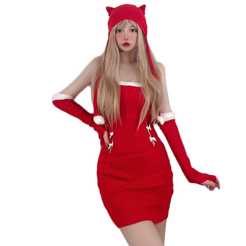 Рождественское платье ручной работы набор для жены женщины красный Санта платья бебидолл сексуальный косплей костюм вечерние подарок 101A