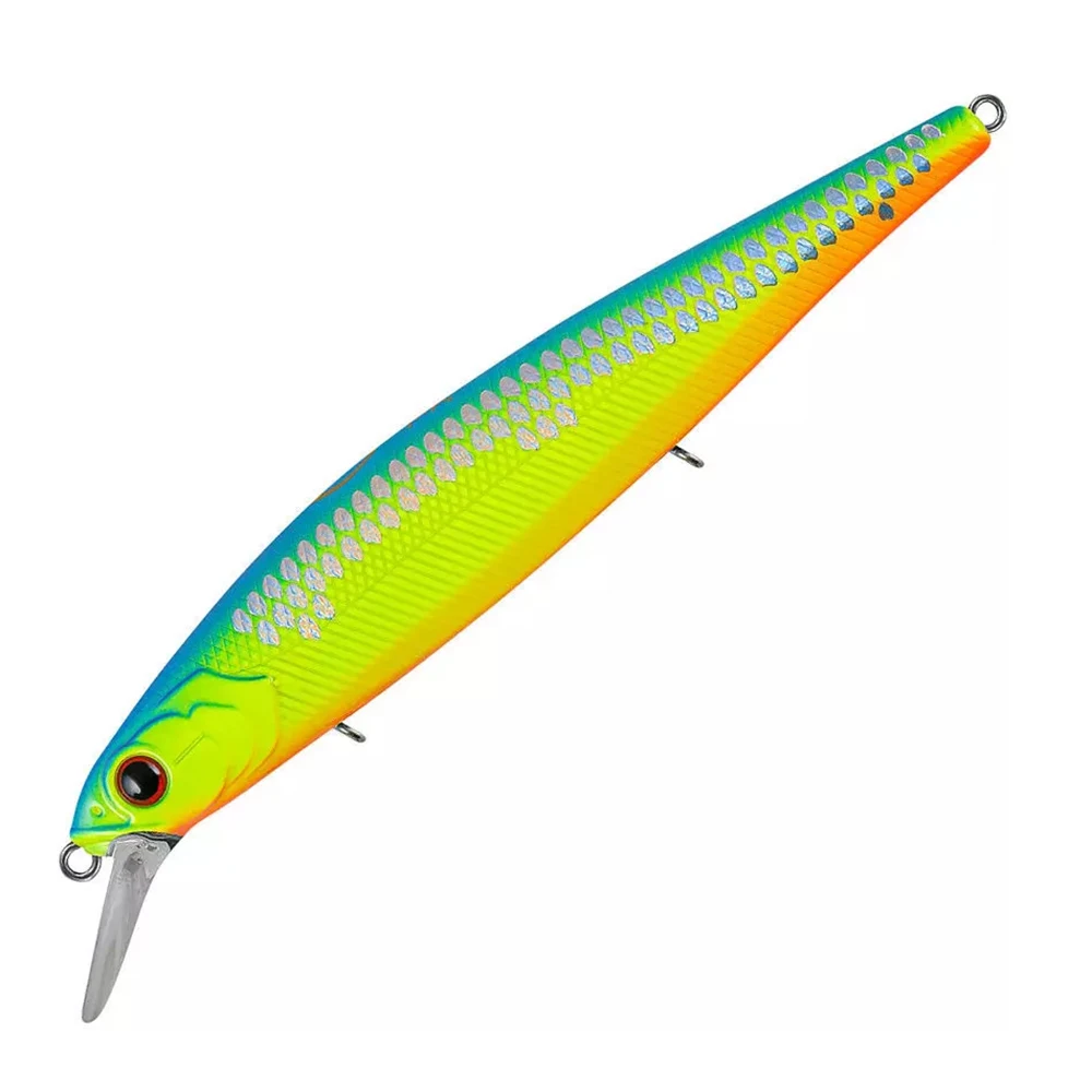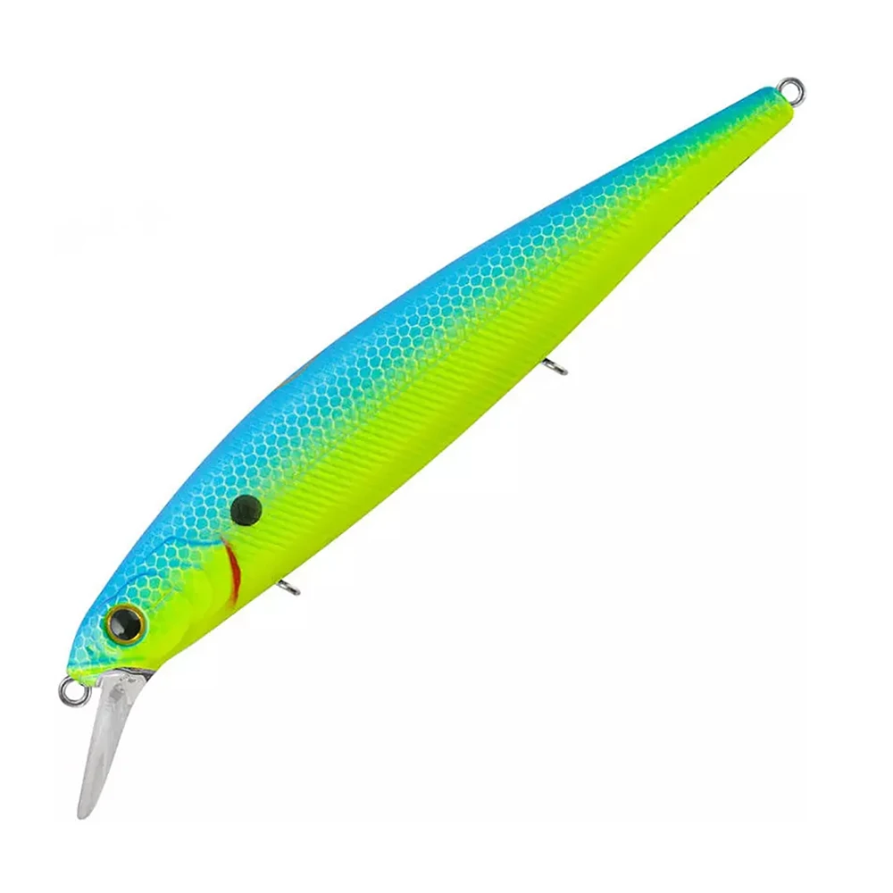 Технические параметры: подвеска (SP), длина 115 мм, вес 16,5 г, глубина 1,0-1,8 м. Средний размер minnow нейтральная плавучесть для ловли на глубине 2-2,5 метров.