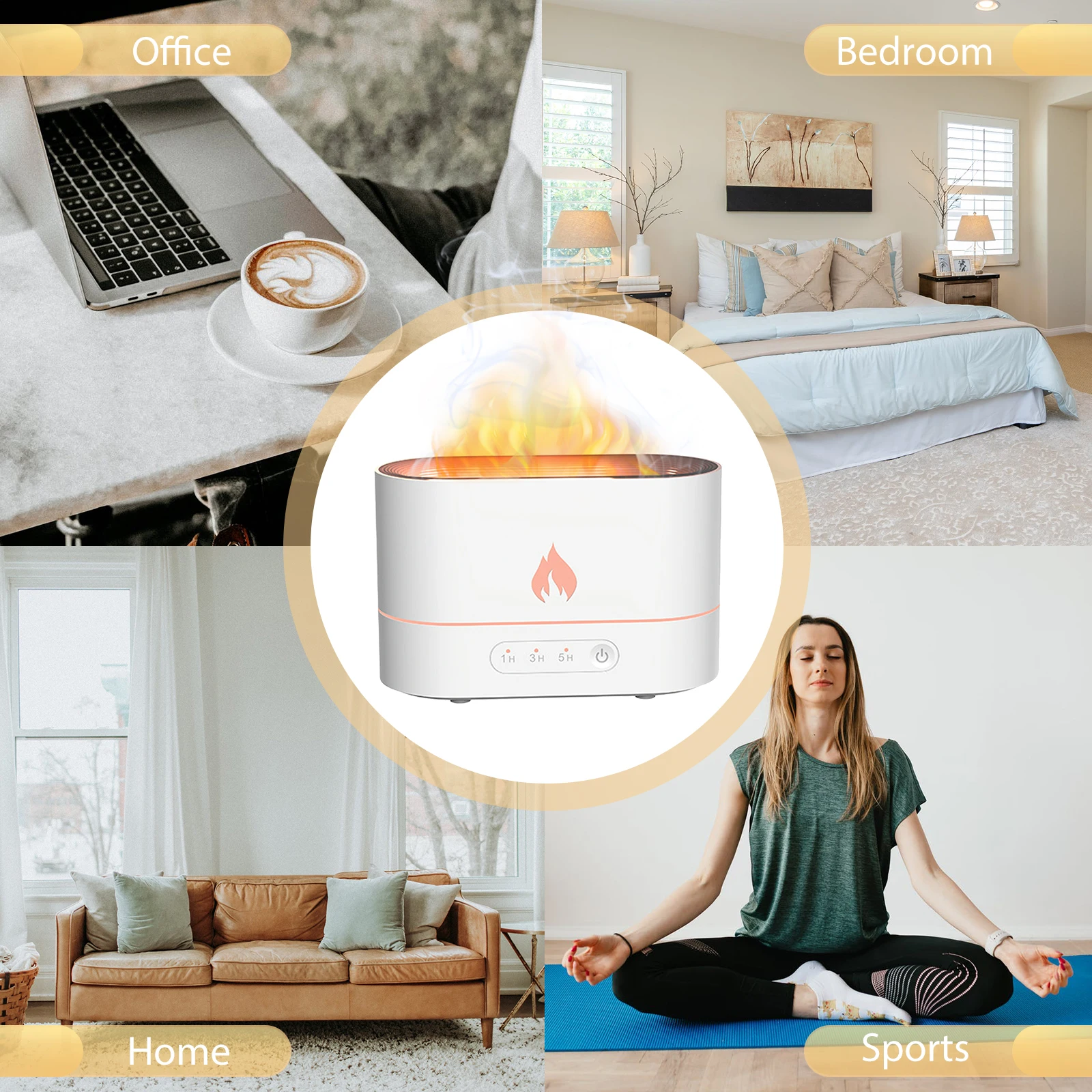Распылитель для ароматерапии был спроектирован-светодиодный светильник в сочетании с туманом, он покажет реалистичный эффект пламени, который приносит атмосферу романтики и исцеления ночью. Он может увлажнить воздух на 360 ° равномерное увлажнение, так что вы можете дышать свежим воздухом, пахнет свежим воздухом, как вы находитесь в лесу.