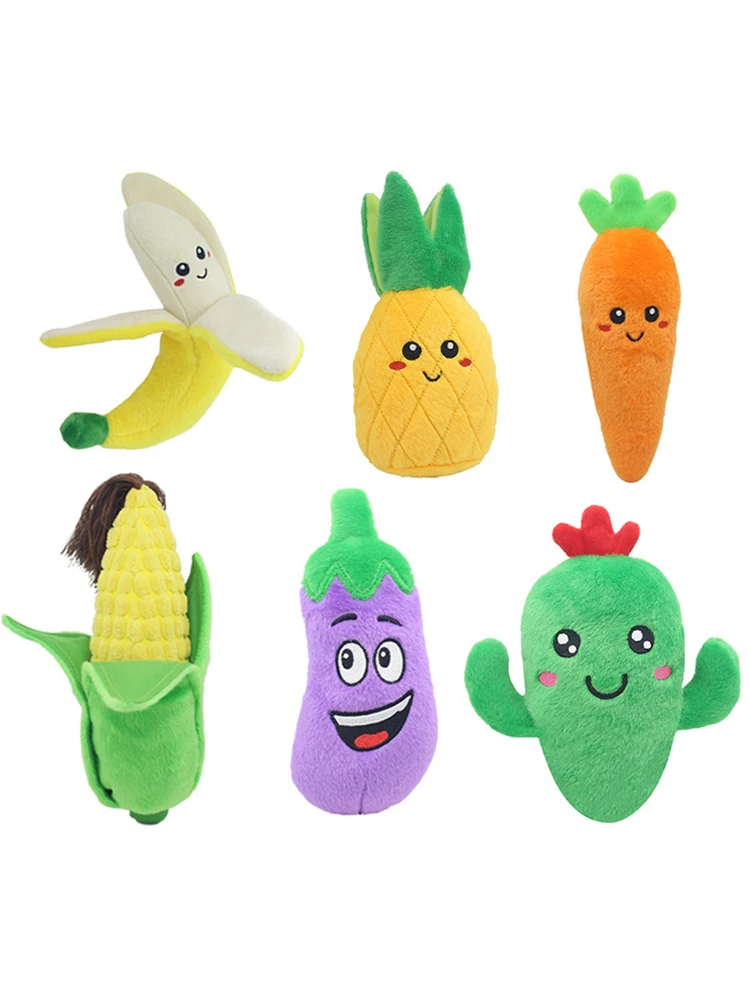 Милые игрушки для собак: плюшевые игрушки MGKPET для собак сделаны в форме ананаса, баклажан, кукурузы, кактуса, они являются очаровательным персонажем с яркими цветами, которые сохранят интерес вашей собаки и будут развлекать их