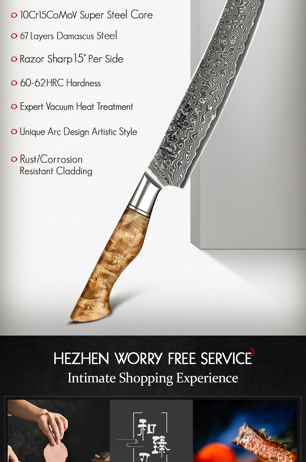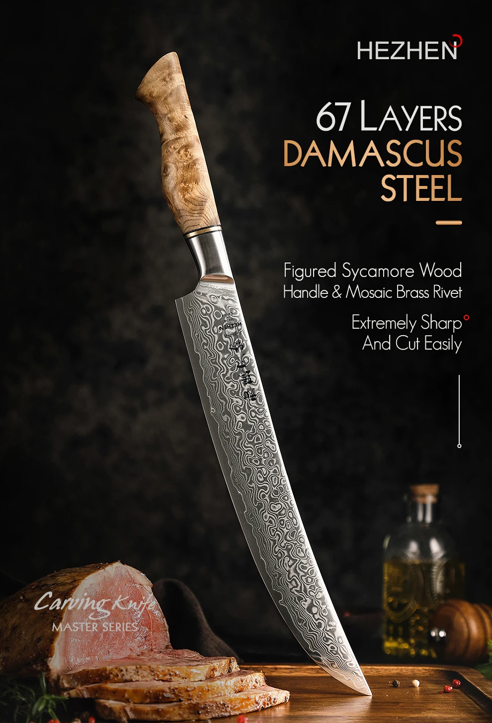 HEZHEN Мастер серии Дамасская сталь резной нож
