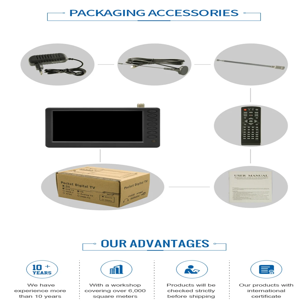 Mini 5 Inch D5 Digital Tv Dvbt2 Atsc Radio U Disk Playback Hd H.265 Car Navigation Portable