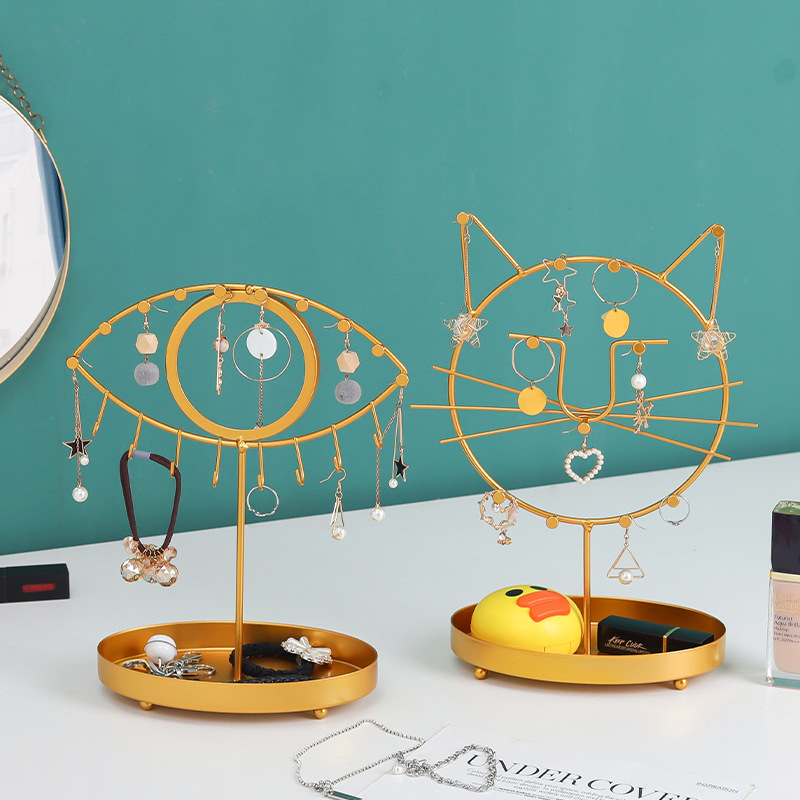 Креативный девчачий кронштейн из кованого железа, ювелирная стойка, украшения для спальни, INS, кошачья форма, настольные серьги, органайзер для хранения ювелирных изделий, полка