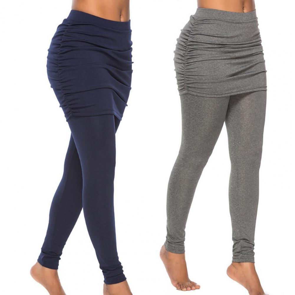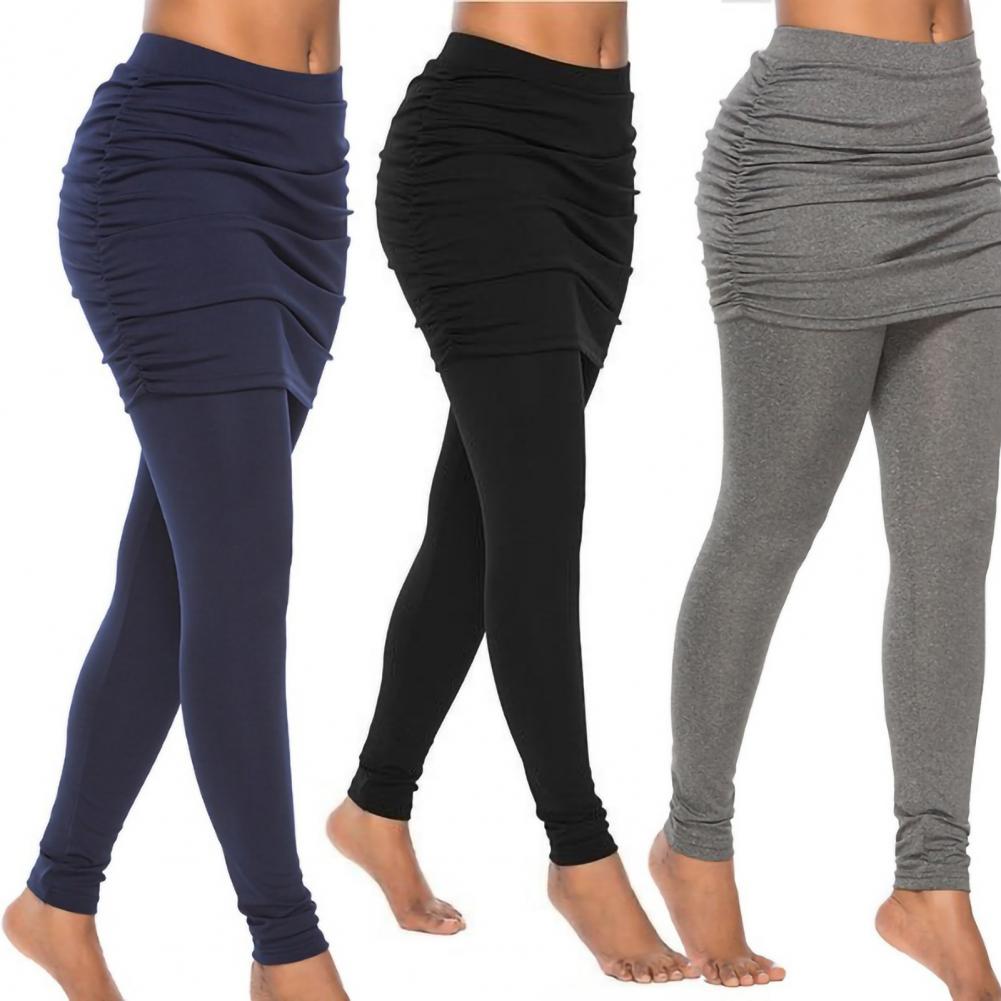 Облегающие леггинсы, юбка, однотонные, имитация двух частей, высокая талия, уникальный дизайн, длинные брюки, юбка для спортзала