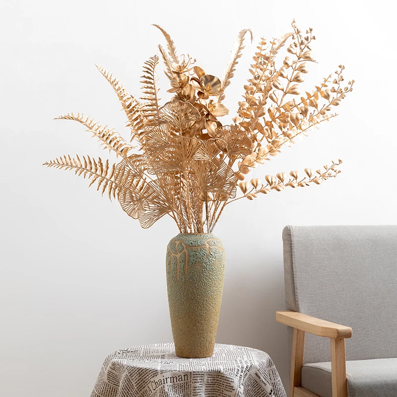 Рождественское искусственное золото гинкго эвкалипта Холли пластиковые растения для дома DIY свадебный букет цветы украшения стены аксессуары