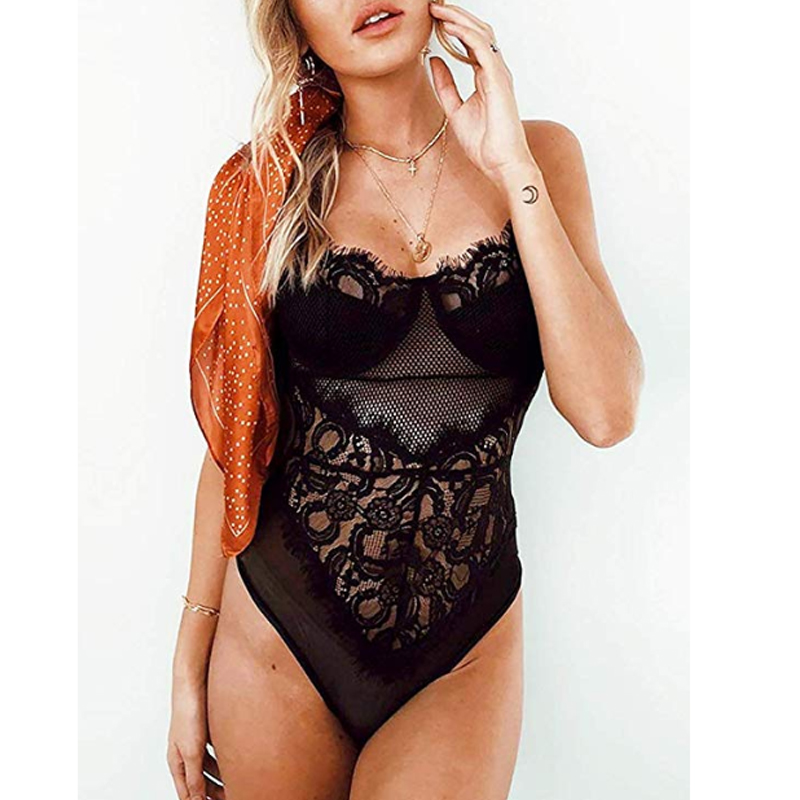 Style: Sexy Lace Floral Strappy Bodysuit Lingerie