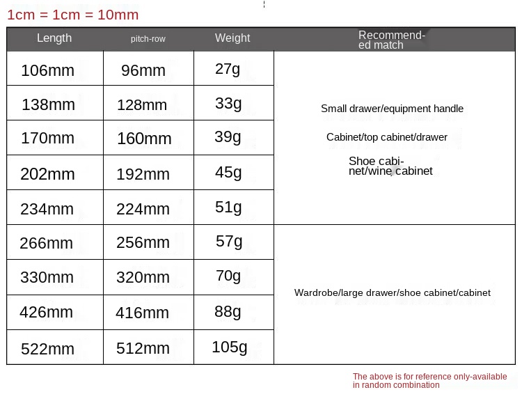 Размер ручки (мм):96/128/160/192/224/256/320/416/512