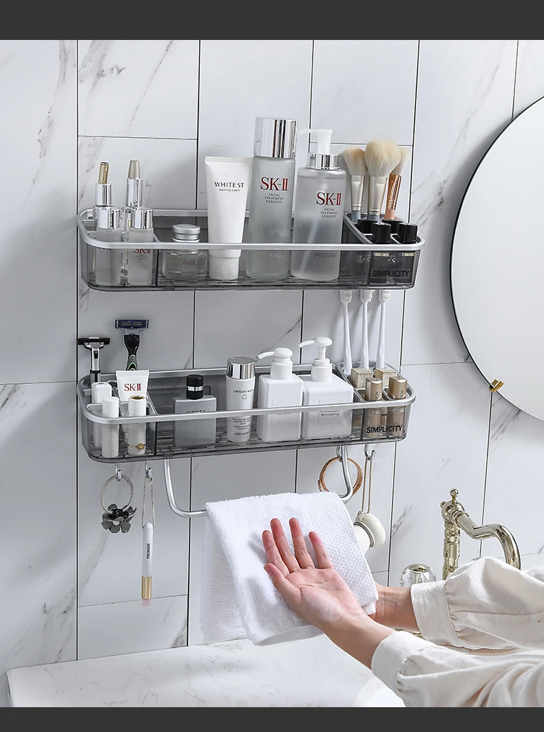 Новая пластиковая настенная полка для ванной, прозрачное полотенце для макияжа, стеллажи для хранения, угловая душевая Косметическая полка, аксессуары для ванной комнаты