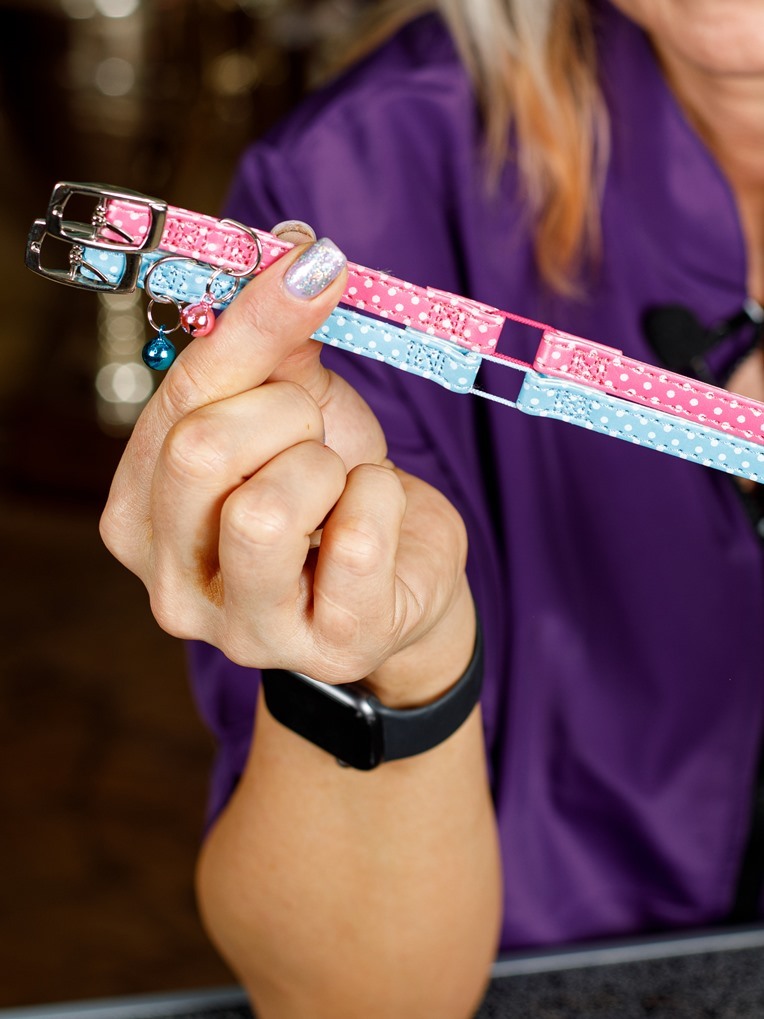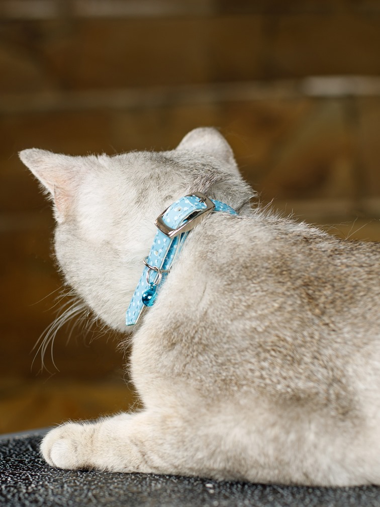 Название: Безопасный ошейник Japan Pet в стиле "Швейцарского горошка" с системой защиты от удушения, сияющий голубой, размер S (открытая упаковка)