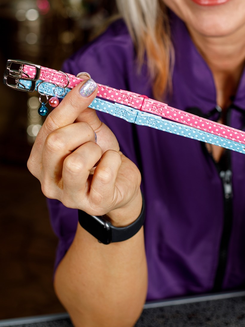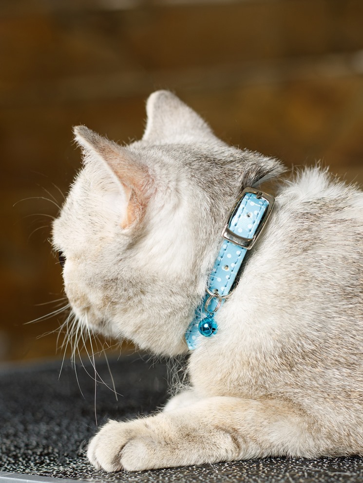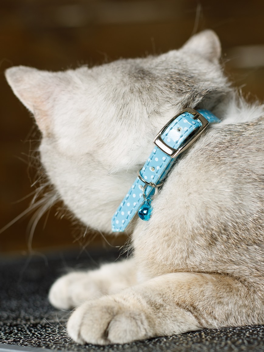 Изысканный ошейник для кошек с колокольчиком из мягкой эко-кожи с двух сторон. БЕЗОПАСНЫЙ: скрытые резинки не позволяют ошейнику туго затянуться. ДОЛГОВЕЧНЫЙ: эко-кожа обработана по особой технологии – ультра-кортингом (ультра-полировка), что придает особой блеск и обеспечивает длительную эксплуатацию. Не промокает в воде и позволяет сочетать в себе практичность и яркость. Вес до 7 кг, обхват шеи 19-23 см. Голубой