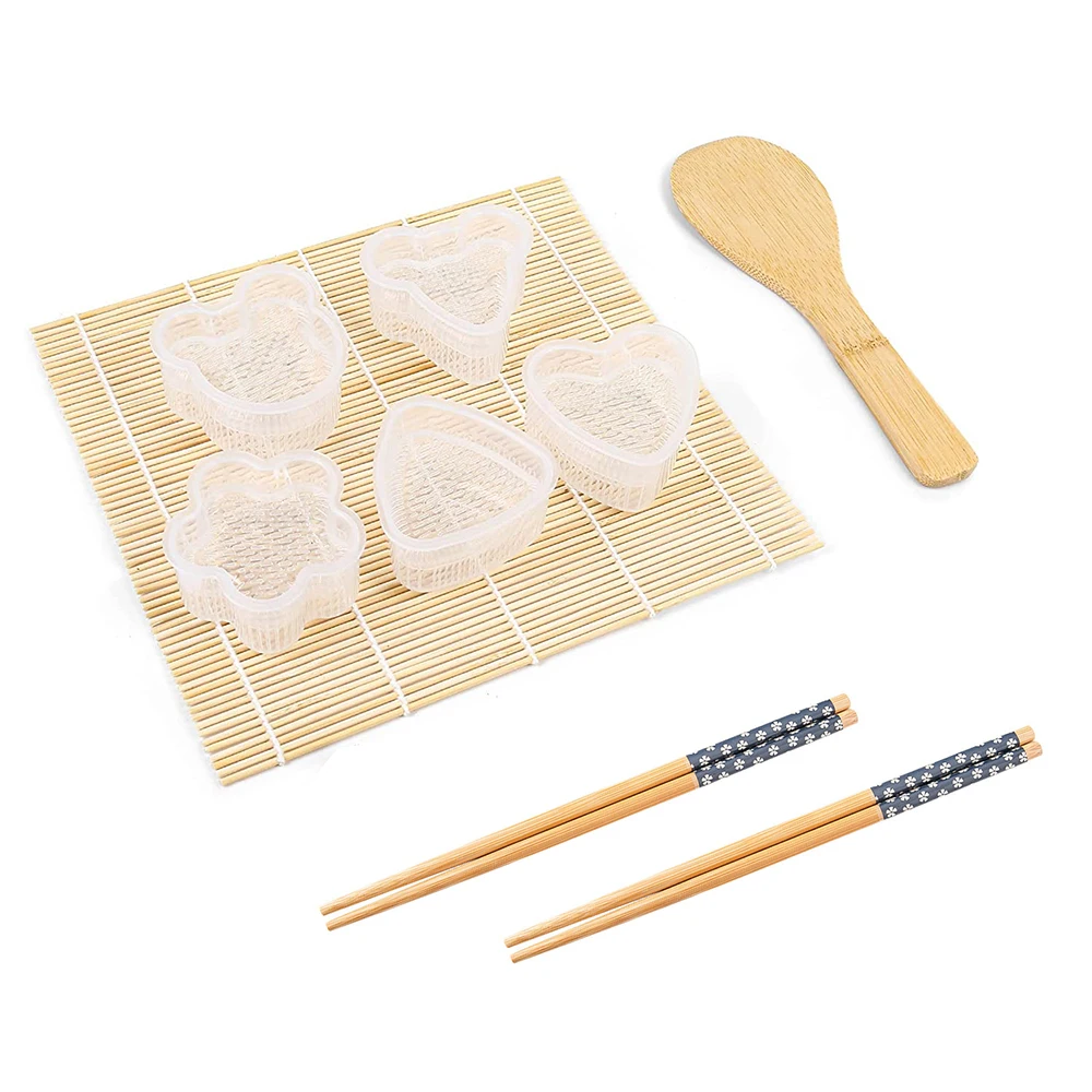 1 Sushi Mat, 1 Rice Paddle, 2 Pairs of Chopsticks, 5 Rice Molds