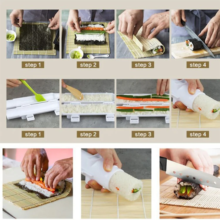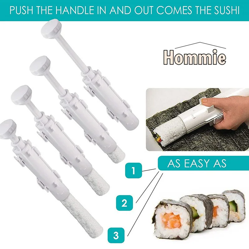 1 Sushi Bazooka,2 Sushi Mats, 5Pairs of Chopsticks, 2Types of Rice Paddles