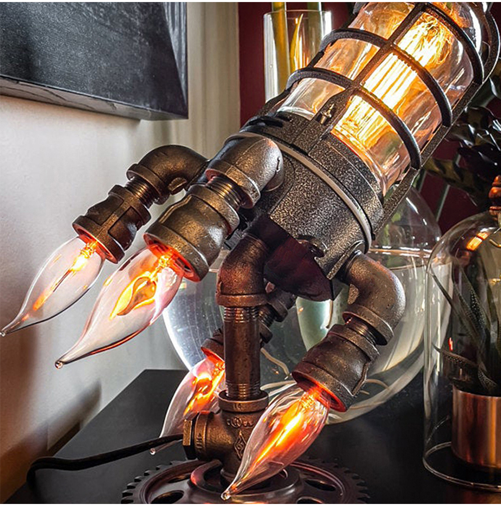 Винтажный Настольный светильник в стиле стимпанк с изображением ракеты, Ночной светильник с пламенем для магазина бара, настольный декор, светильник, светильники, креативные светодиодные стоячие лампы E26