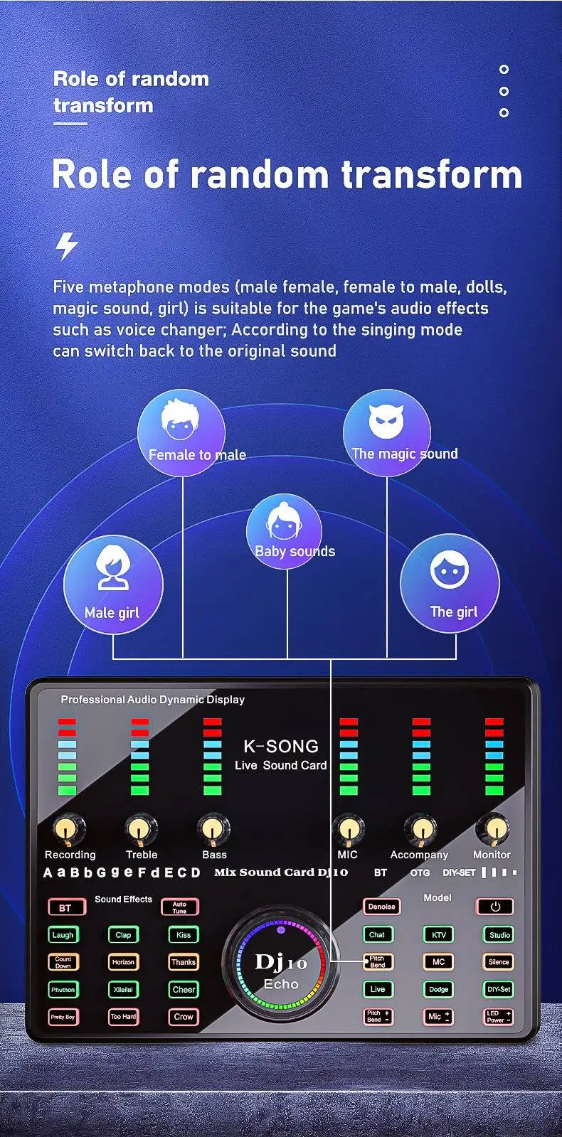 ●Доступны различные звуковые эффекты, такие как: мужские, женские и детские и т. Д.