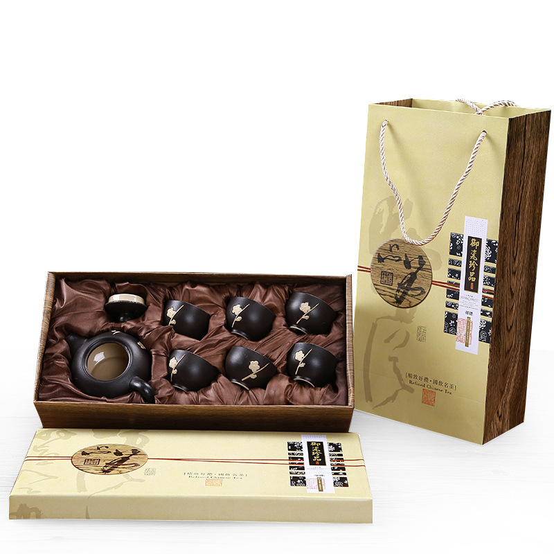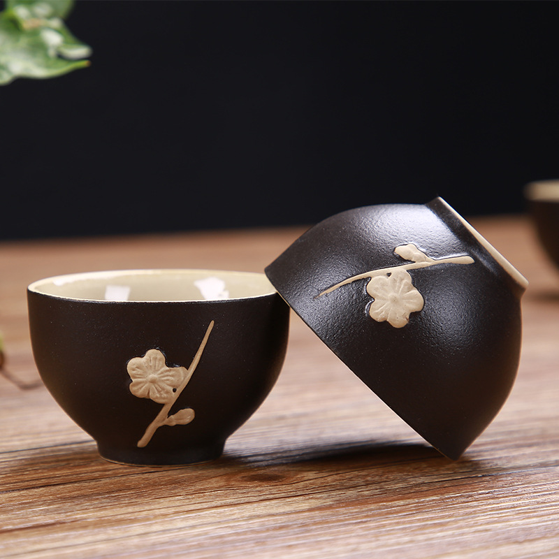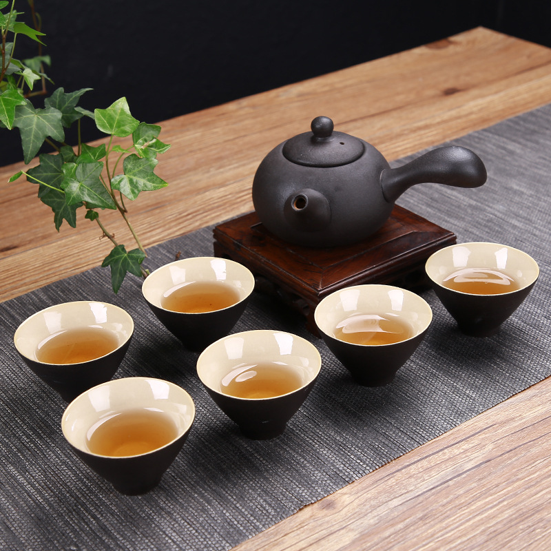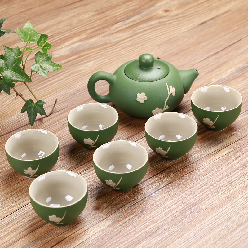 Фиолетовый Глиняный чайный набор, креативная черная керамика, цветущая слива, кунг-фу, чайный набор, чайная посуда, боковая чайная горшка с семью чашками, набор чайных чашек, подарки