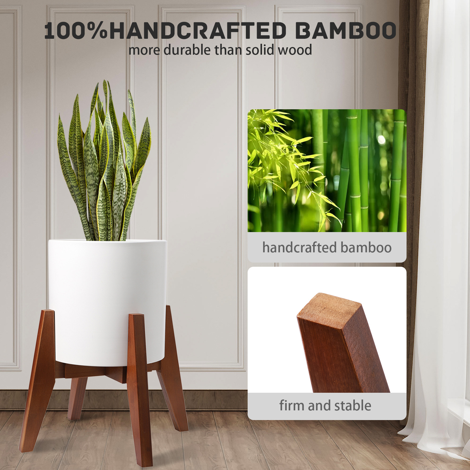 1. Прочный и крепкий: стабильная подставка для растений обеспечивает прочность и высокую прочность, позволит избежать тряски держателя цветочного горшка, изготовленного из высококачественной древесины, подходит как для внутреннего, так и для наружного использования.