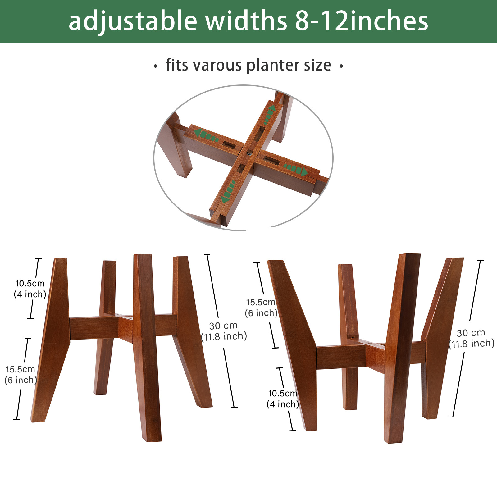2. Регулируемая ширина: Телескопическая Подставка для растений с регулировкой ширины, подходит для различных размеров растительных горшков, таких как кактусы, цветочные растения, фруктовые деревья и т. д. И вы также можете перевернуть его, чтобы удерживать свое растение.
