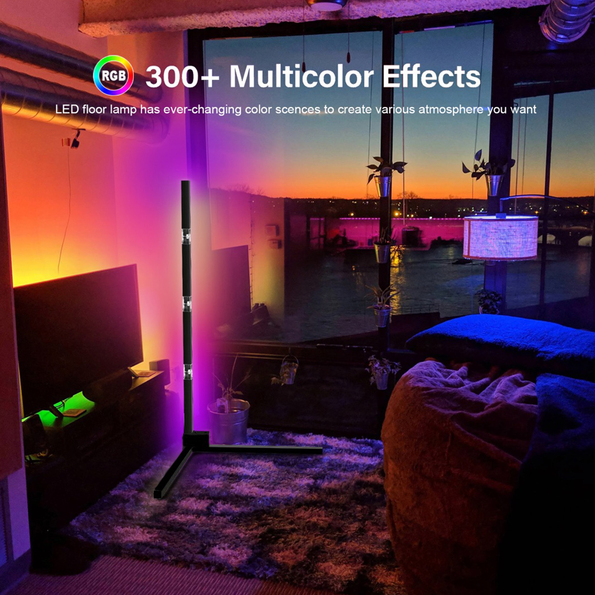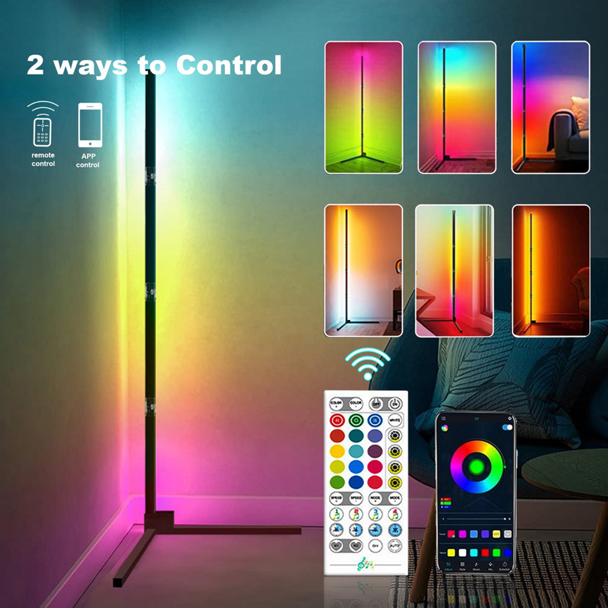 【3 Управление Methods】 в светодиодный Угловой светильник может быть Управление светодиодный по дистанционный пульт Управление, Управление коробка, при помощи приложений и Управление. Вы можете управлять угловой светильник пола по телефону, не выходя из дивана и теплой кровати, чтобы настроить цвет, яркость, светильник и время.