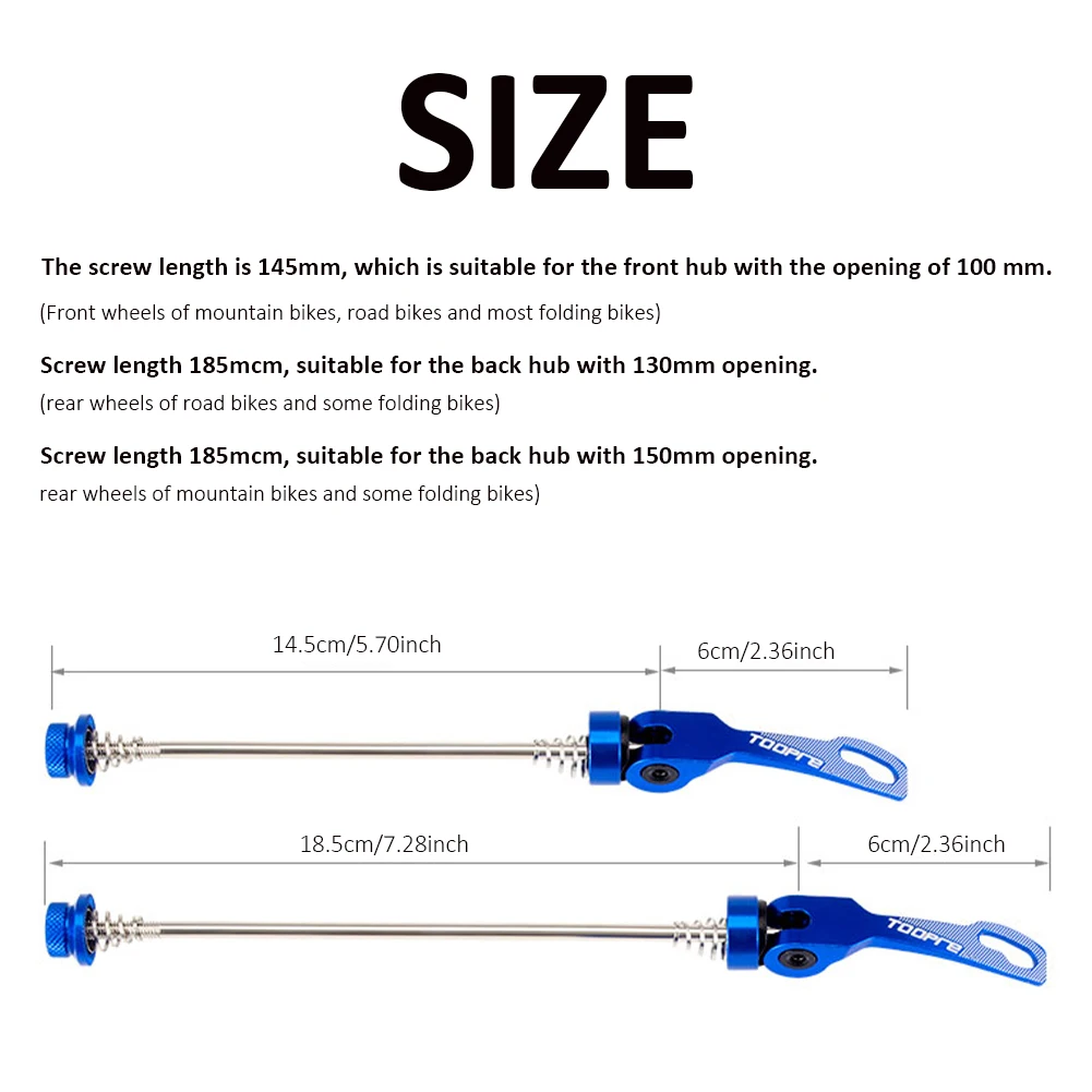 *4. The screw length is 145/185mm, which is suitable for the front hub with the opening of 100mm and the back hub with the opening of 130/150mm.
