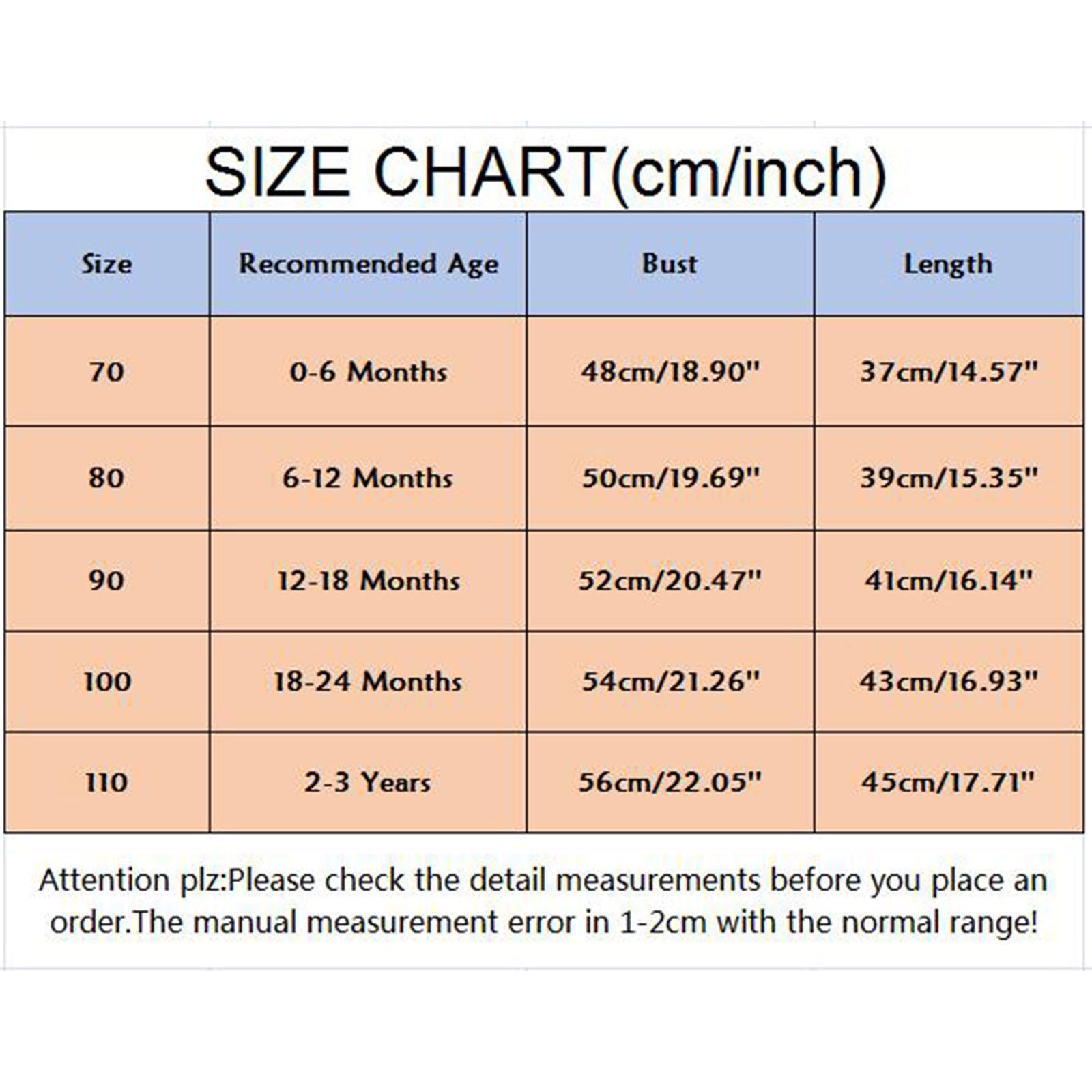 Размеры Рекомендуемый возраст Бюст Длина 70 0-6 месяцев 48 см/18,90'' 37 см/14,57'' 80 6-12 месяцев 50 см/19,69'' 39 см/15,35'' 90 12-18 месяцев 52 см/20,47'' 41 см/16,14'' 100 18-24 месяцев 54 см/21,26'' 43 см/16,93'' 110 От 2 до 3 лет 56 см/22,05'' 45 см/17,71''