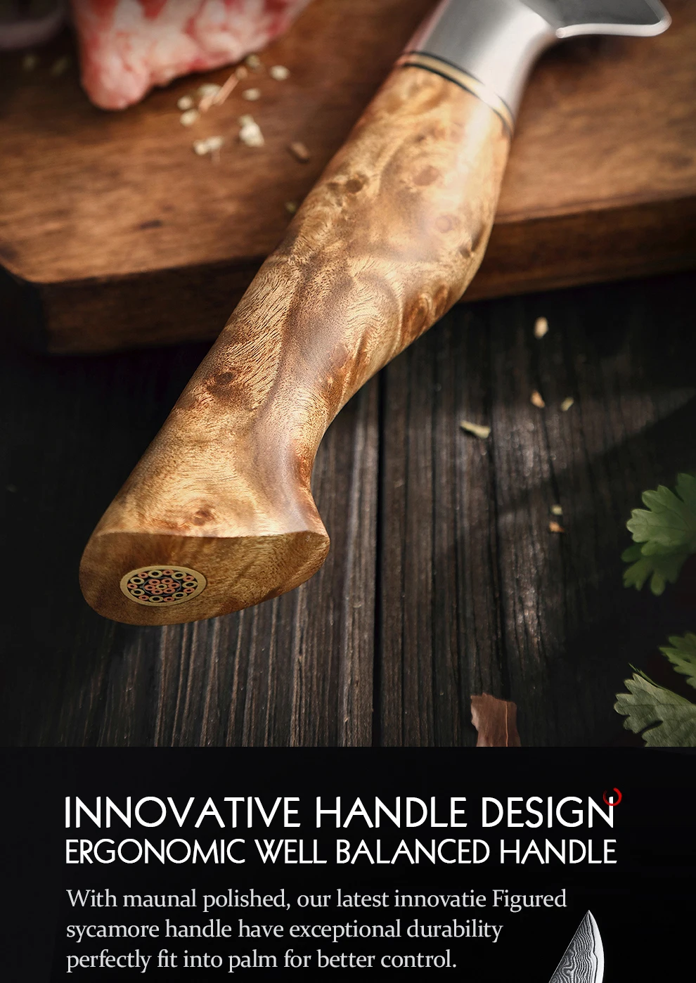 Материал ручки:Высококачественные фигурные деревянные ручки sycamore и мозаичные латунные заклепки