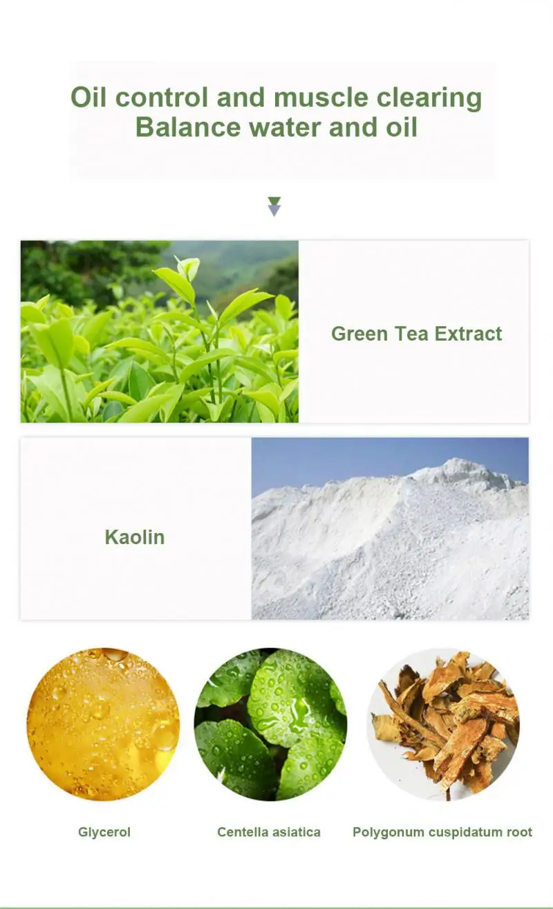 Однотонная Очищающая маска зеленого чая содержит экстракт зеленого чая, который может эффективно очищать поры кожи, глубоко очищать кожу от грязи, регулировать водный и масляный баланс кожи, восстанавливать влагу кожи, И питает кожу.