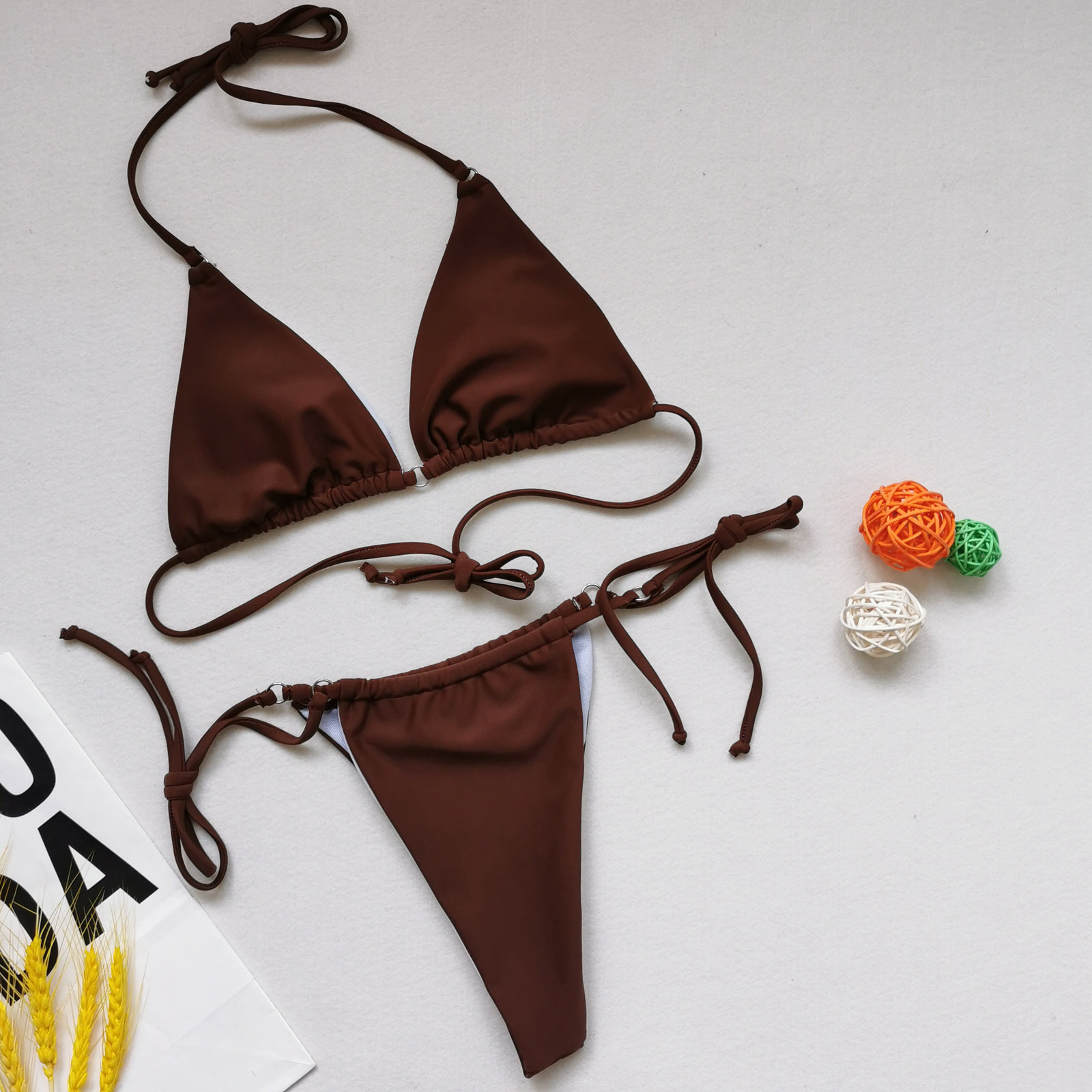 3.Традиционный треугольный крой, меньше покрытия, подчеркивает ваш силуэт. Высокий крой ноги, делает ваши ноги длиннее.