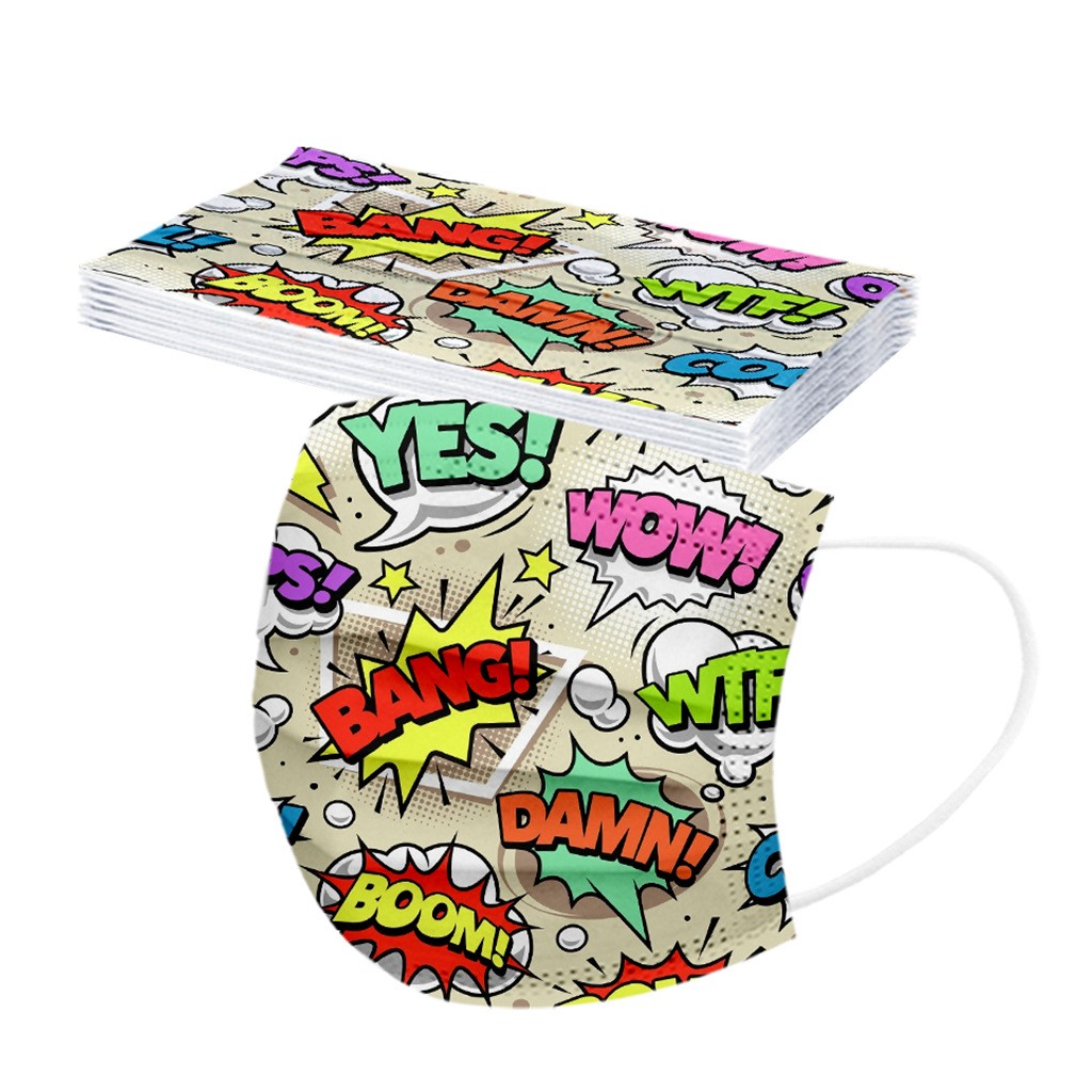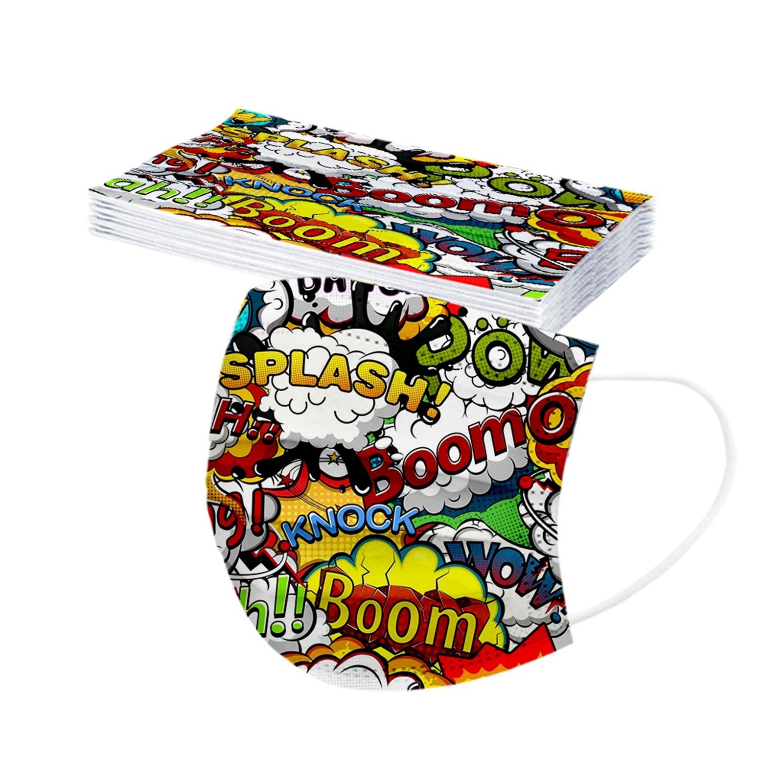 3 слоя мелтблаун ткани одноразовые маски, он безопасен для здоровья и безопасный для вас, чтобы использовать. Дышащий материал и милые узоры, что делает его полезным и модным. СпециальныйРасплавленная тканьДизайн, обеспечивает некоторую защиту от автомобильных выхлопных газов, пыльцы и т. д. эластичная петля для ушей, легко носить и не давит на уши. Маникюрный салон или любые другие области, где может потребоваться защита