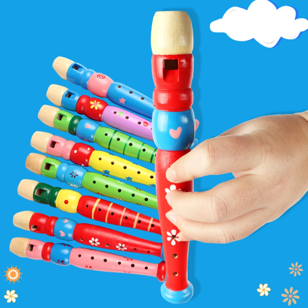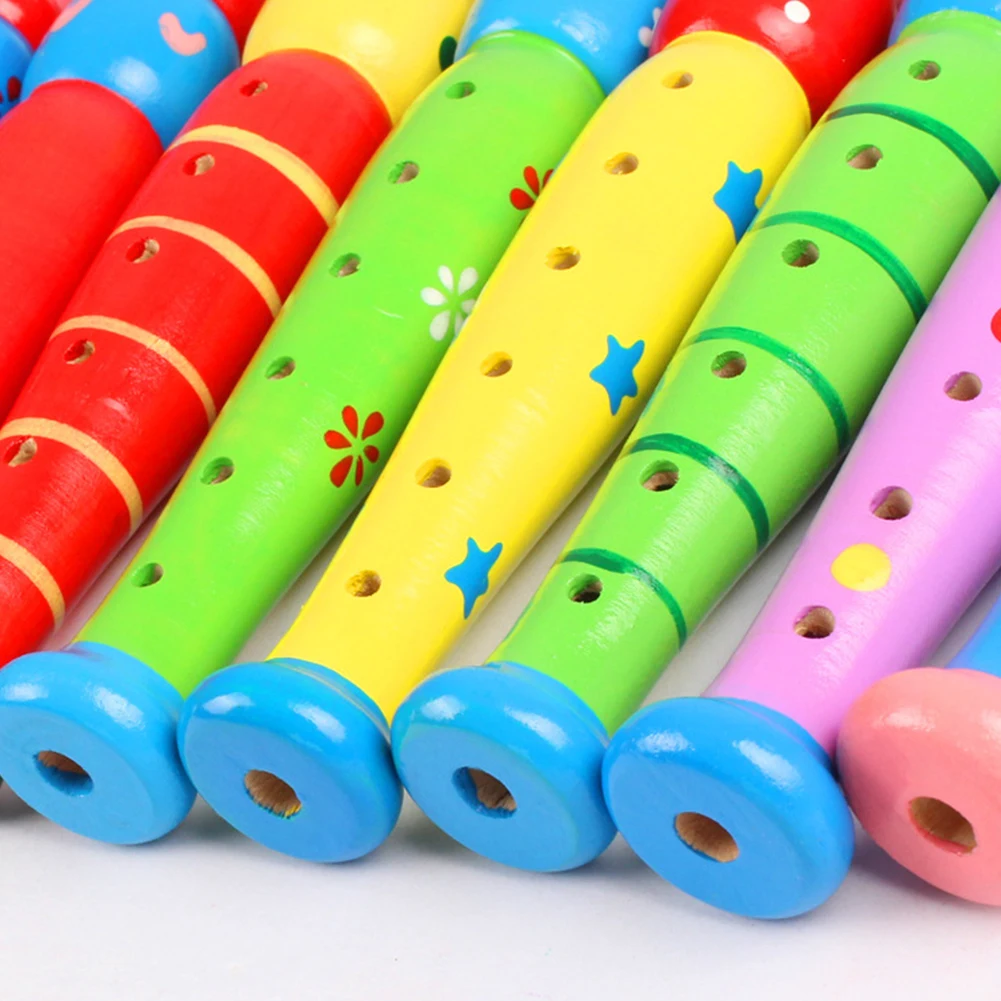 Красивые и красочные узоры, напечатанные на деревянной флейте, легкие и портативные, эта деревянная флейта-отличная музыкальная обучающая игрушка для детей.