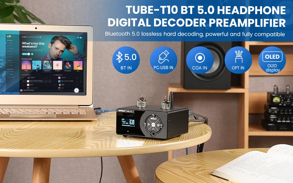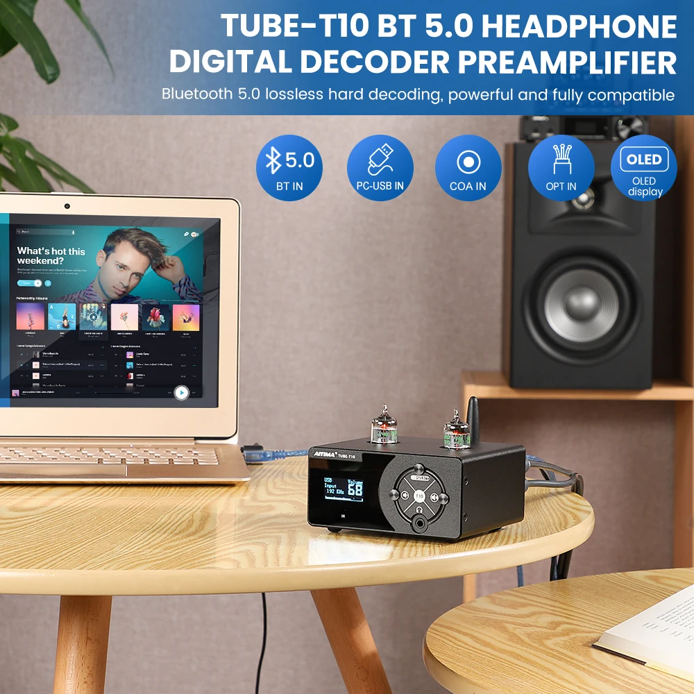Tube-T10 Поддержка Bluetooth/PC-USB/COAX/OPT, он может совместим с большинством аудио оборудования на рынке.