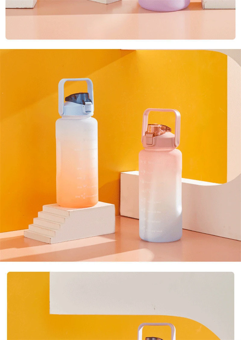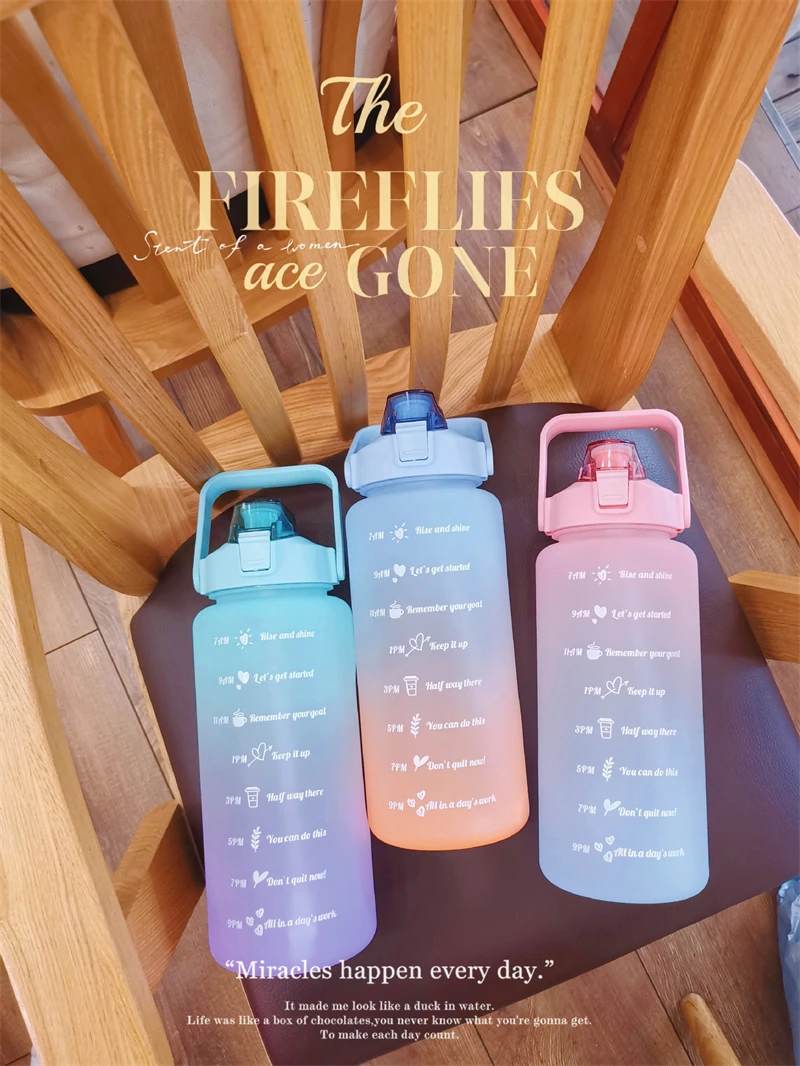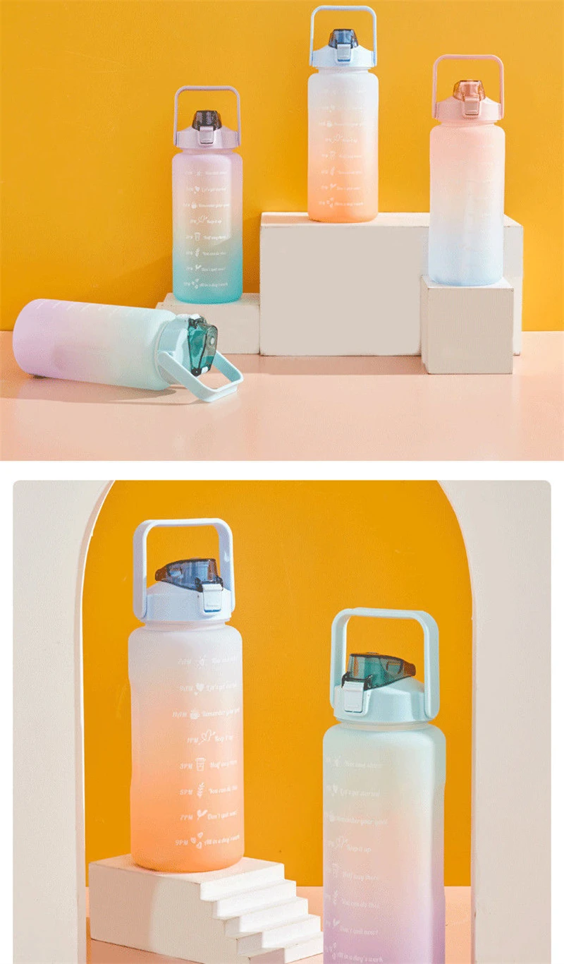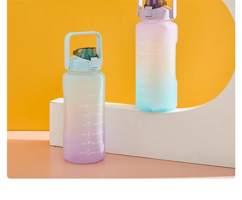 2 литровая большая емкость бутылка для воды с соломинкой со временем маркер фитнес-кувшины градиент цвета пластиковые чашки Спорт на открытом воздухе 2L