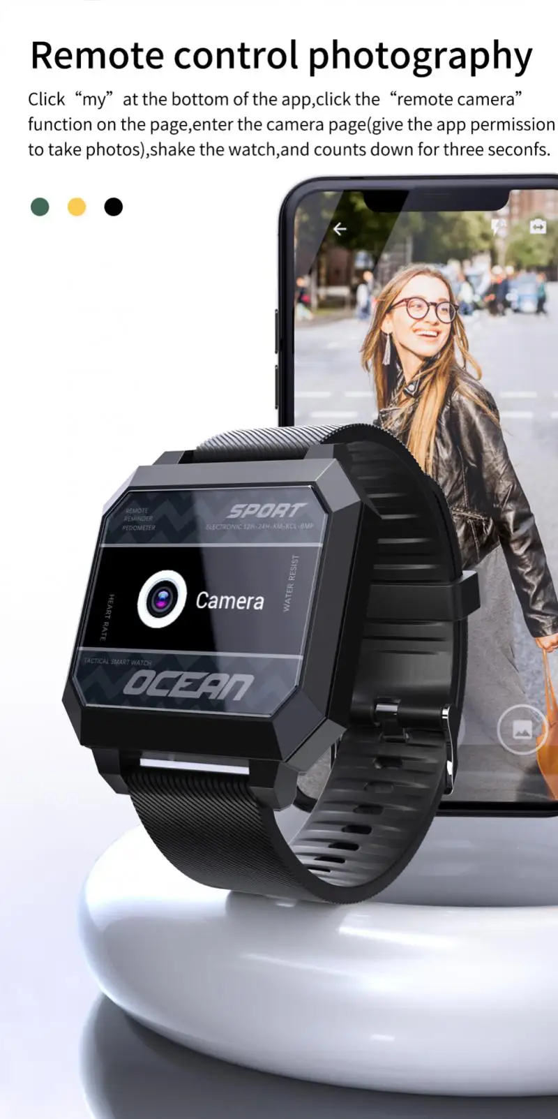 Multiple Watch Faces, Exercise Modes, Sleep Monitoring, Heart Rate Detection,Remote Camera, Information Reminder (phone, Message, Etc.),