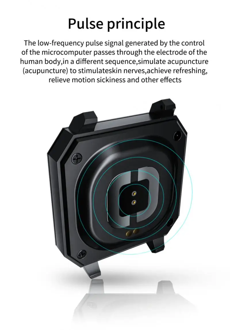 Unique innovative pulse function (Cool Tech), pulse alarm reminder, pulse sedentary reminder, pulse movement target reminder, alleviate motion sickness, focus mode, driving mode;
