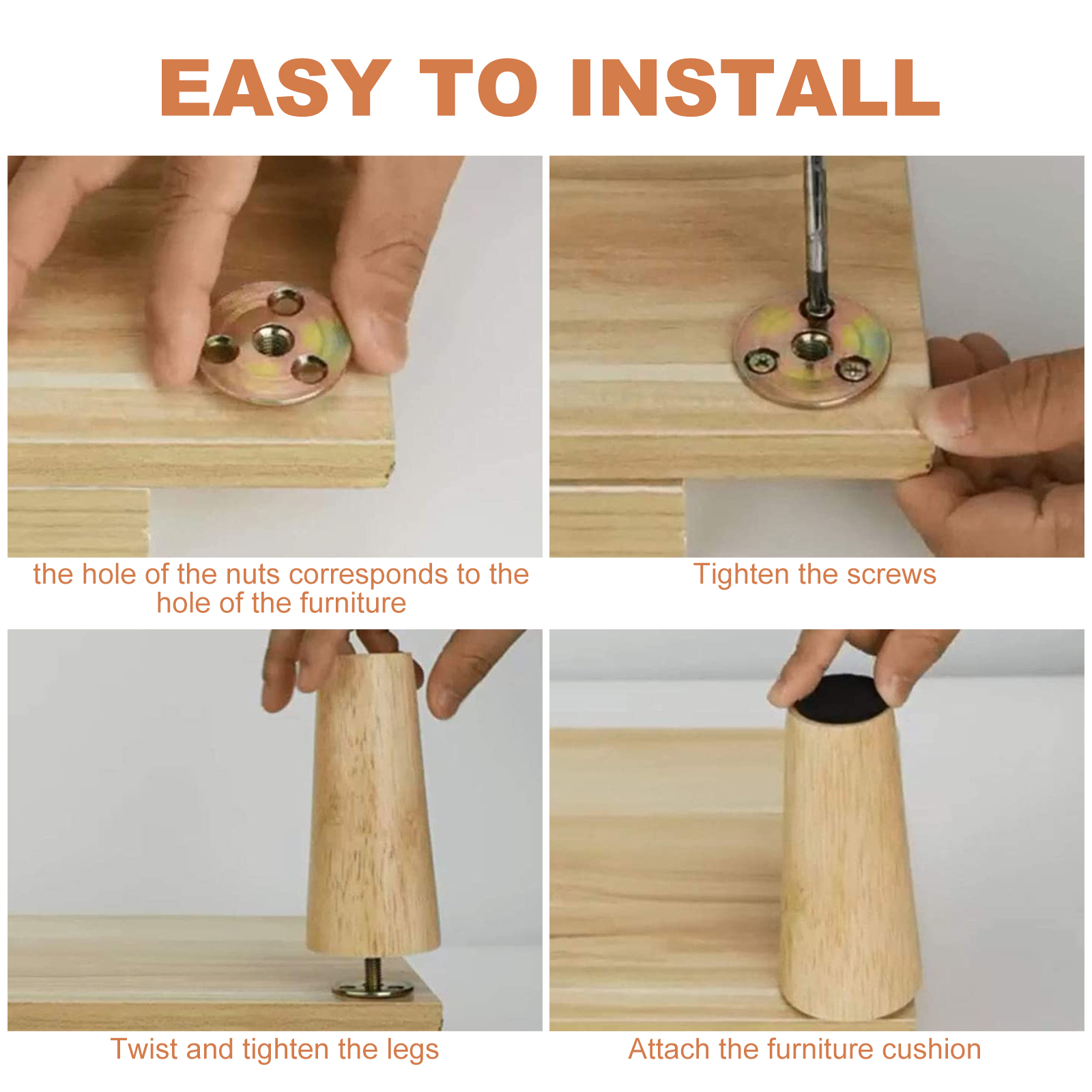 Простая установка: каждая упаковка ножек шкафа оснащена 12 винтами, 4 гайками, 4 резиновыми ковриками. С теми, которые вы можете легко прикрепить эти ножки к мебели. Шаг сборки тщательно выкладывается на картинке.