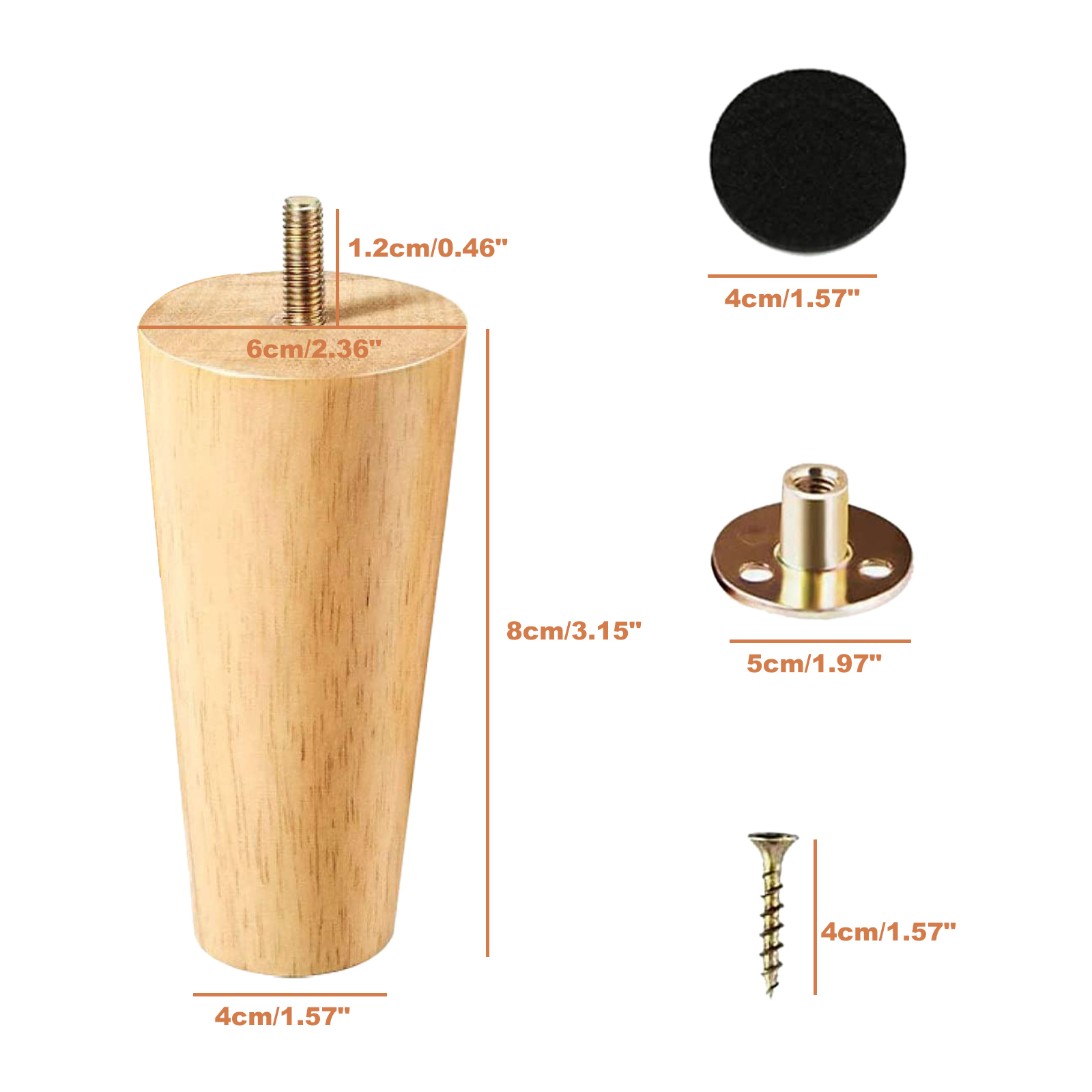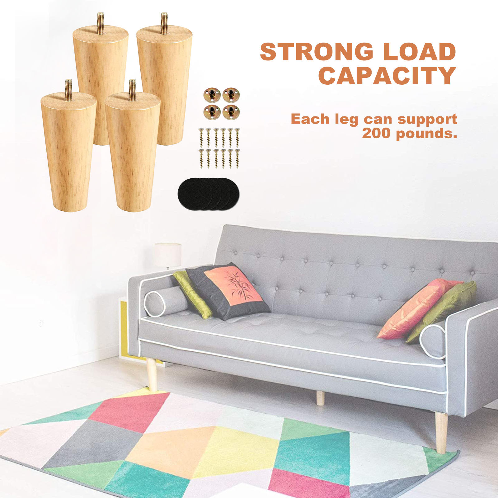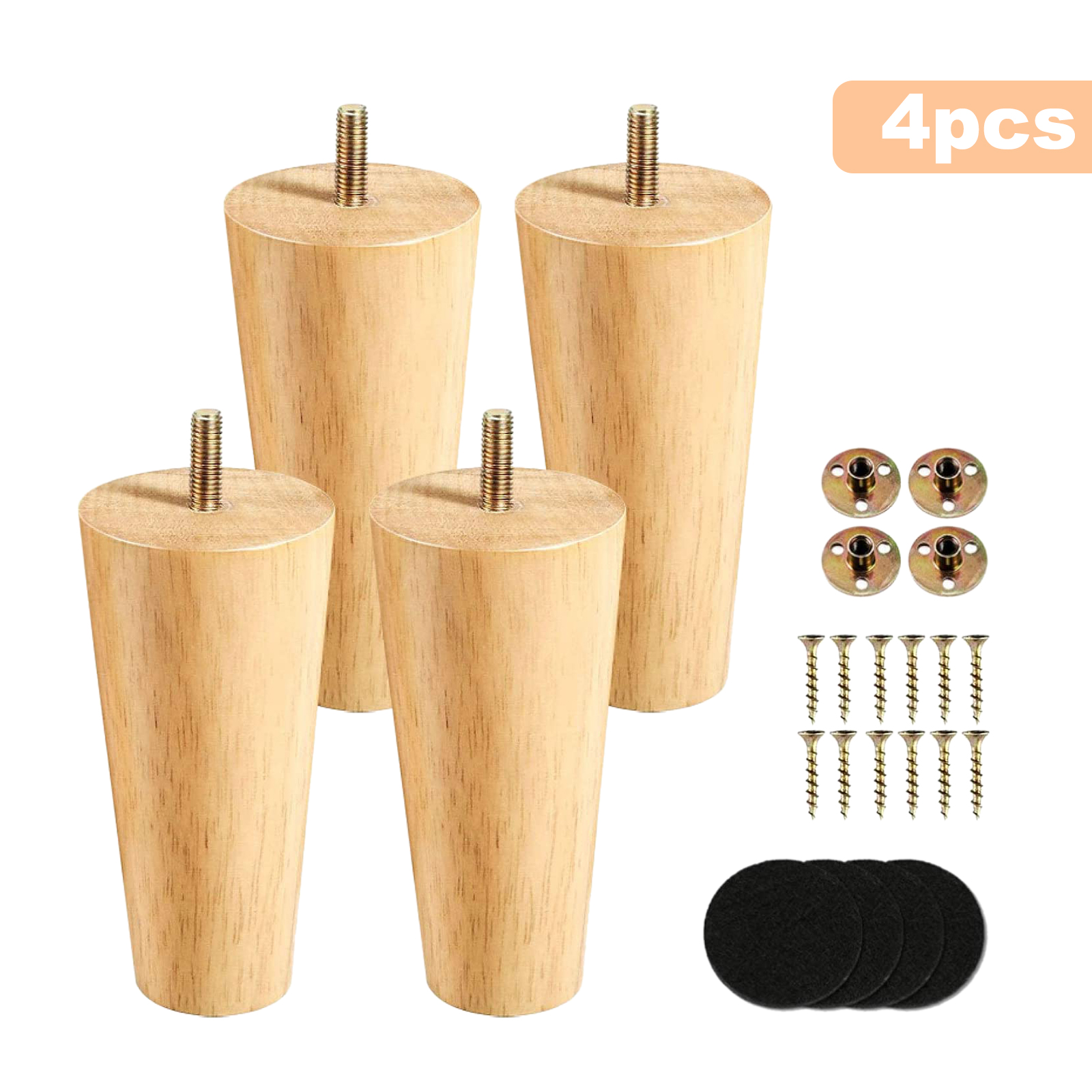 4-дюймовые сверхпрочные прочные 4 упаковки деревянные ножки для мебели, диванные ножки, сменные мебельные ножки с резьбовой монтажной пластиной и винтами и противоскользящими ковриками для дивана, дивана, шкафа