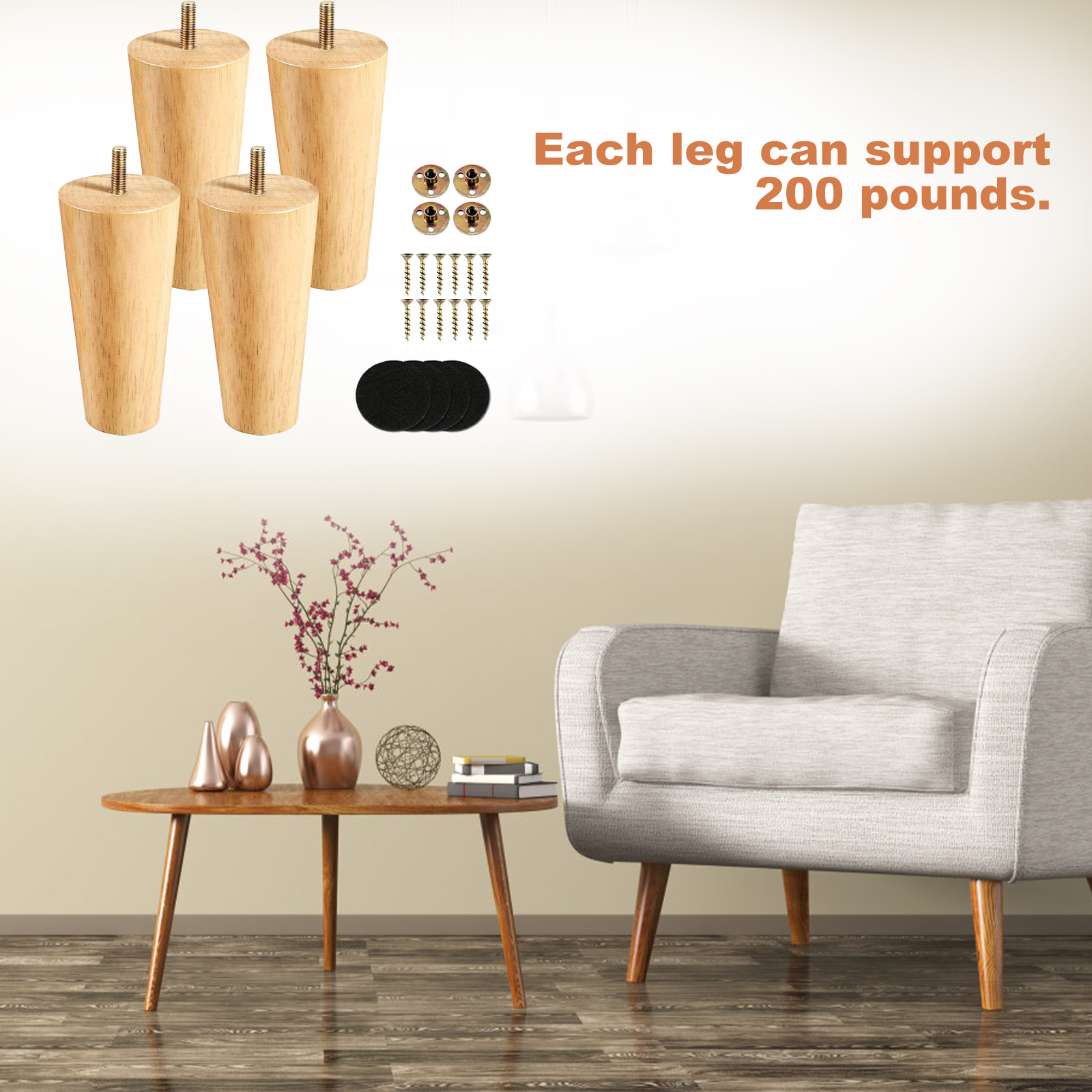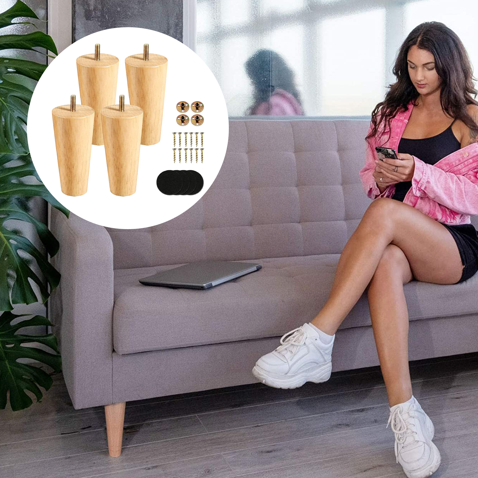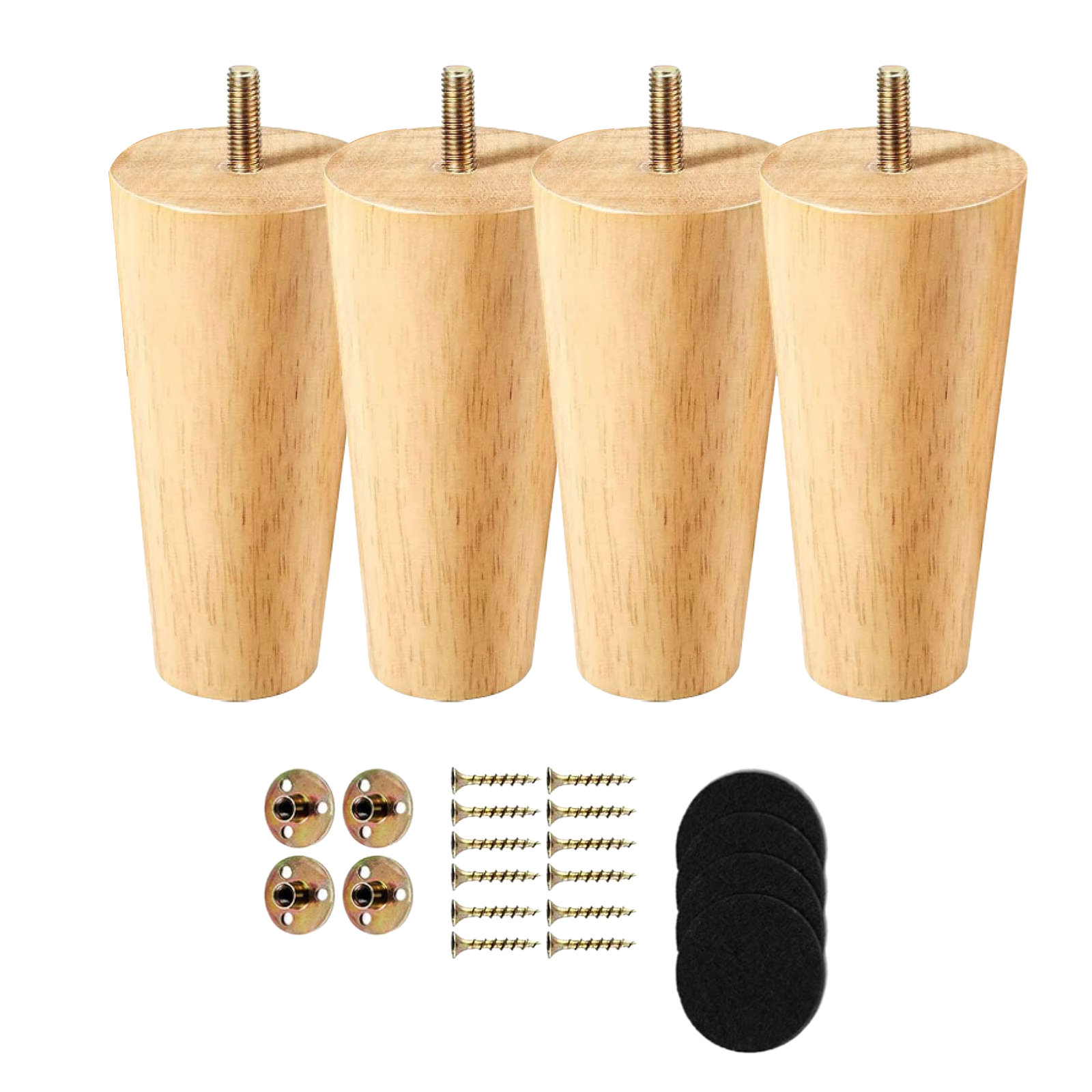 4-дюймовые сверхпрочные прочные 4 упаковки деревянные ножки для мебели, диванные ножки, сменные мебельные ножки с резьбовой монтажной пластиной и винтами и противоскользящими ковриками для дивана, дивана, шкафа
